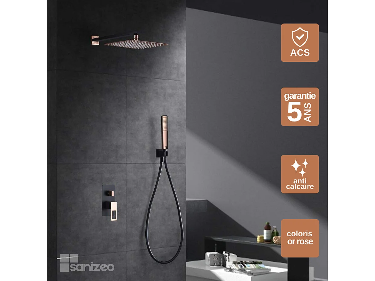Colonne de Douche Encastrée Noir/Or Rose anti-calcaire - Design Moderne et Économie d'eau - Kit Complet SUECIA IMEX