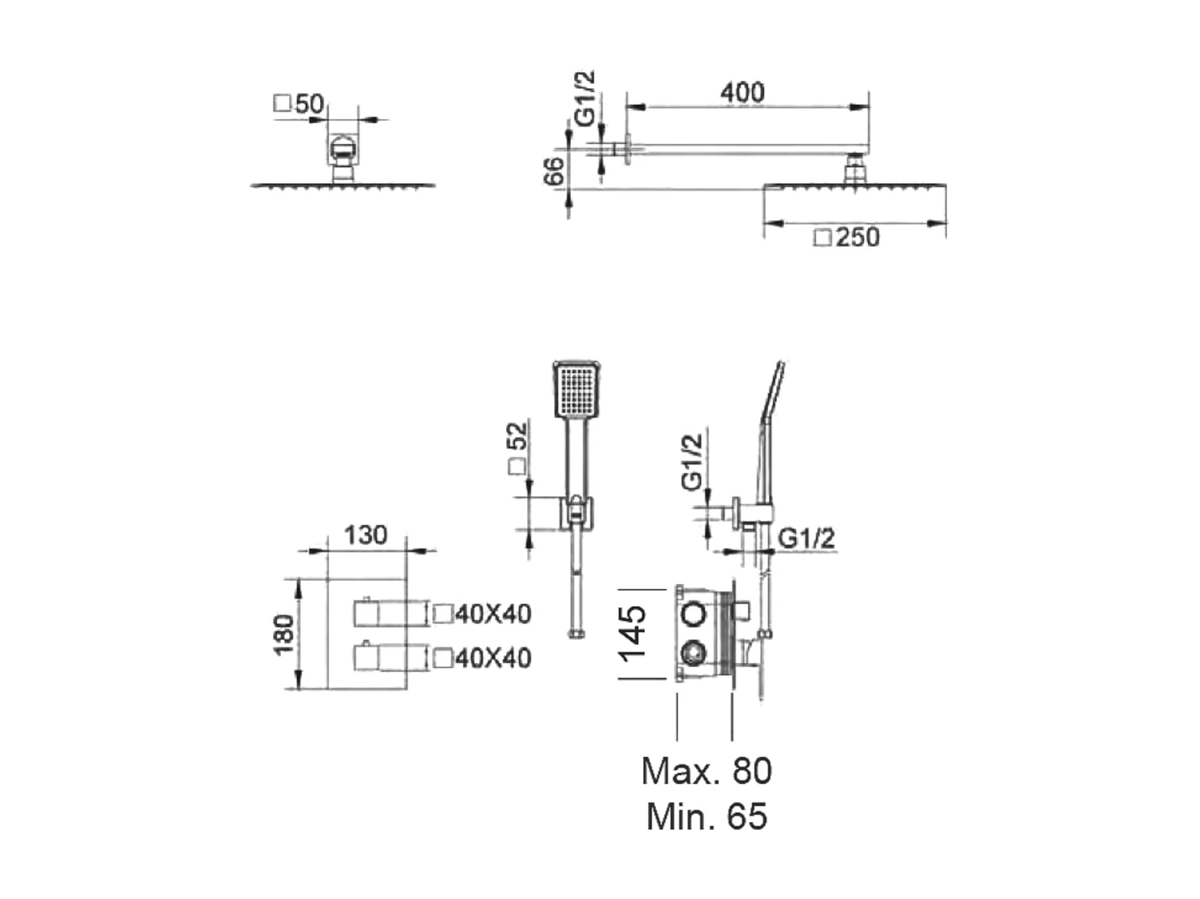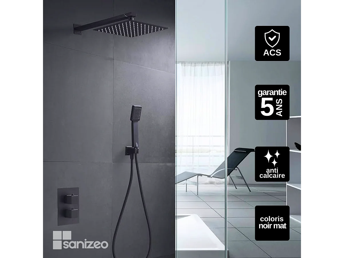 Colonne de Douche Encastrée noir mat anti-calcaire - Design Moderne et Économie d'eau - Kit Complet CIES IMEX