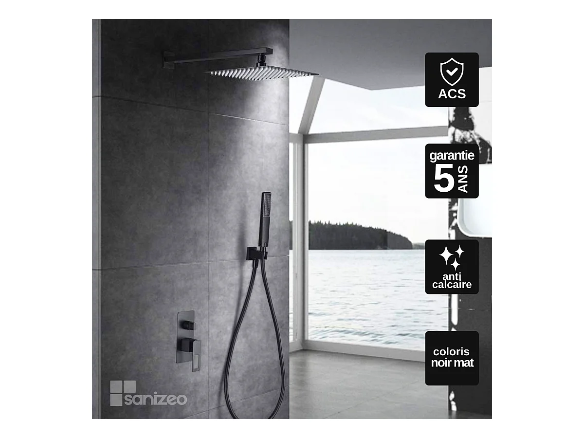 Colonne de Douche Encastrée noir mat anti-calcaire - Design Moderne et Économie d'eau - Kit Complet SUECIA IMEX