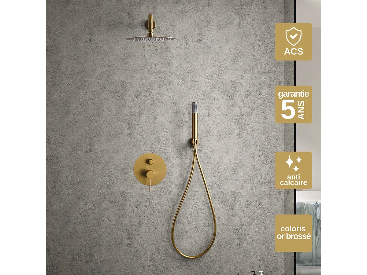 Colonne de Douche Encastrée or brossé anti-calcaire - Design Moderne et Économie d'eau - Kit Complet LINE IMEX
