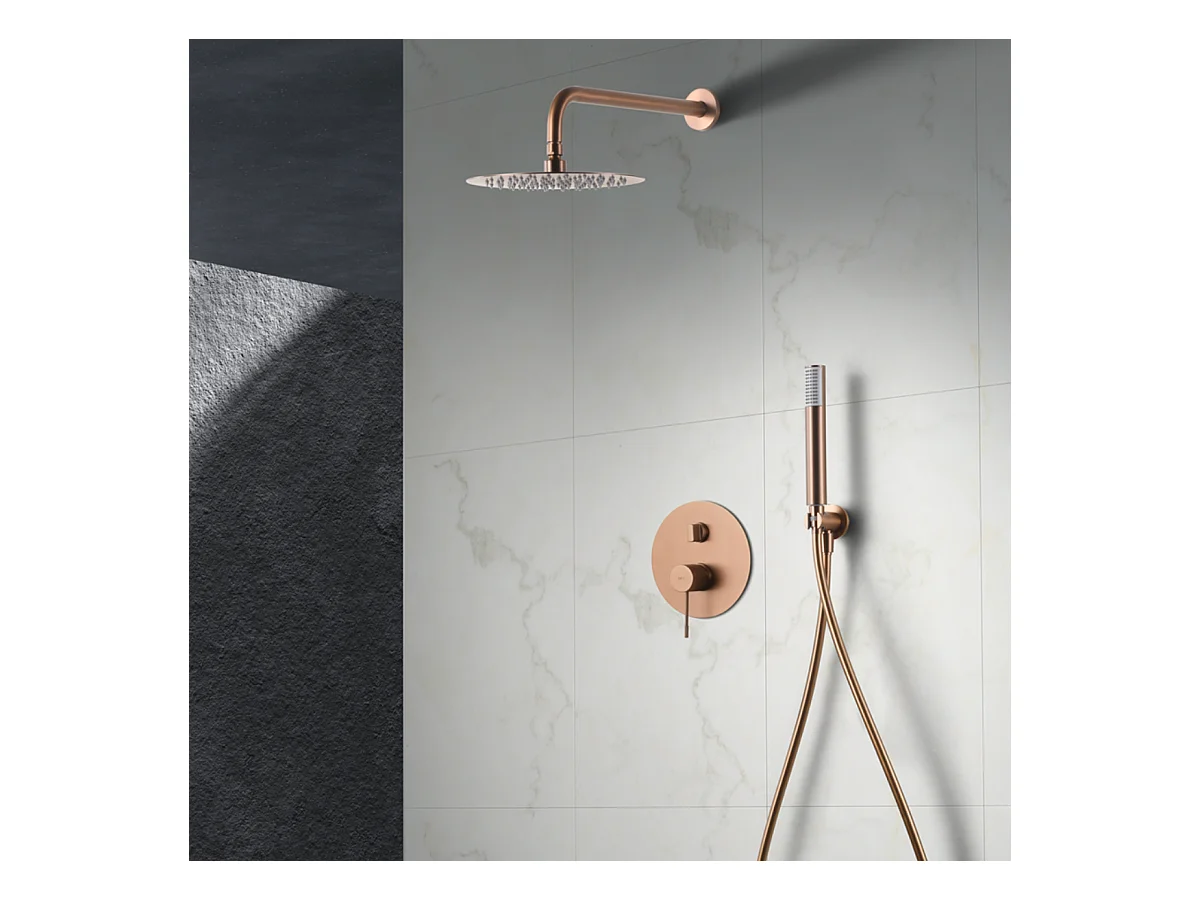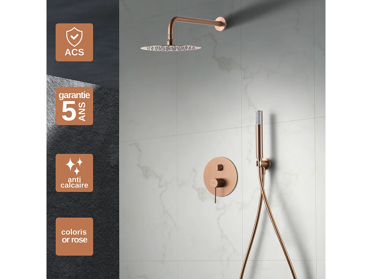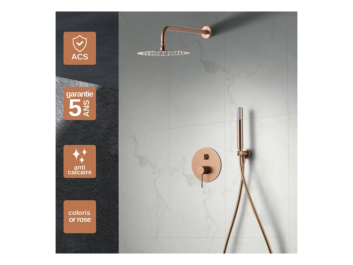 Colonne de Douche Encastrée or rose cuivré anti-calcaire - Design Moderne et Économie d'eau - Kit Complet LINE IMEX