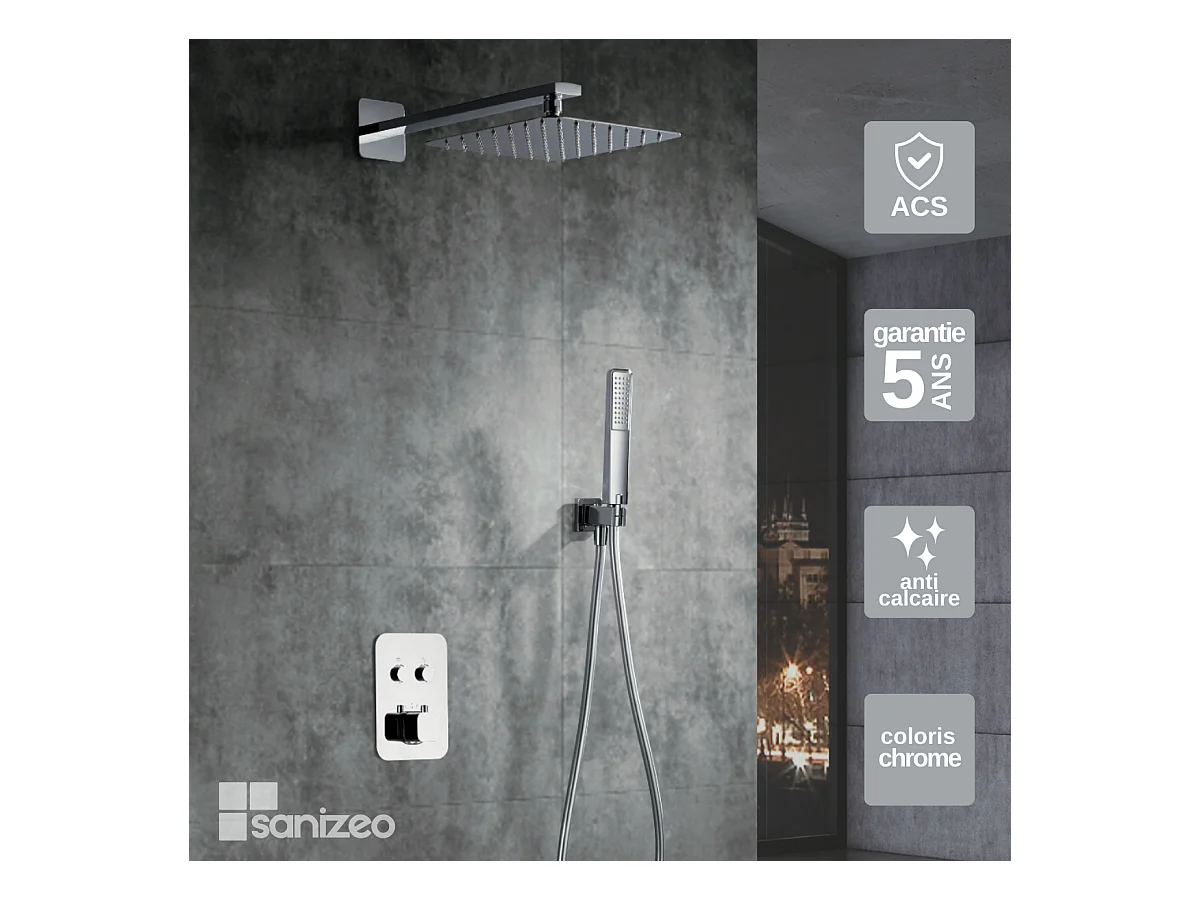 Colonne de Douche Encastrée avec Mitigeur Thermostatique chromé anti-calcaire - Design Moderne - MADEIRA IMEX