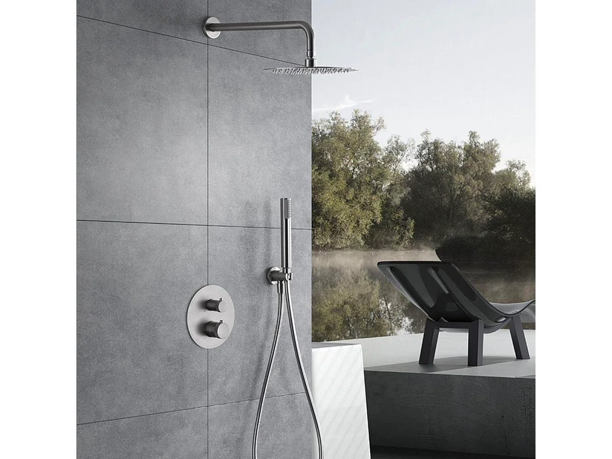 Colonne de Douche Encastrée avec Mitigeur Thermostatique niquel brossé anti-calcaire - Design Moderne - LINE IMEX