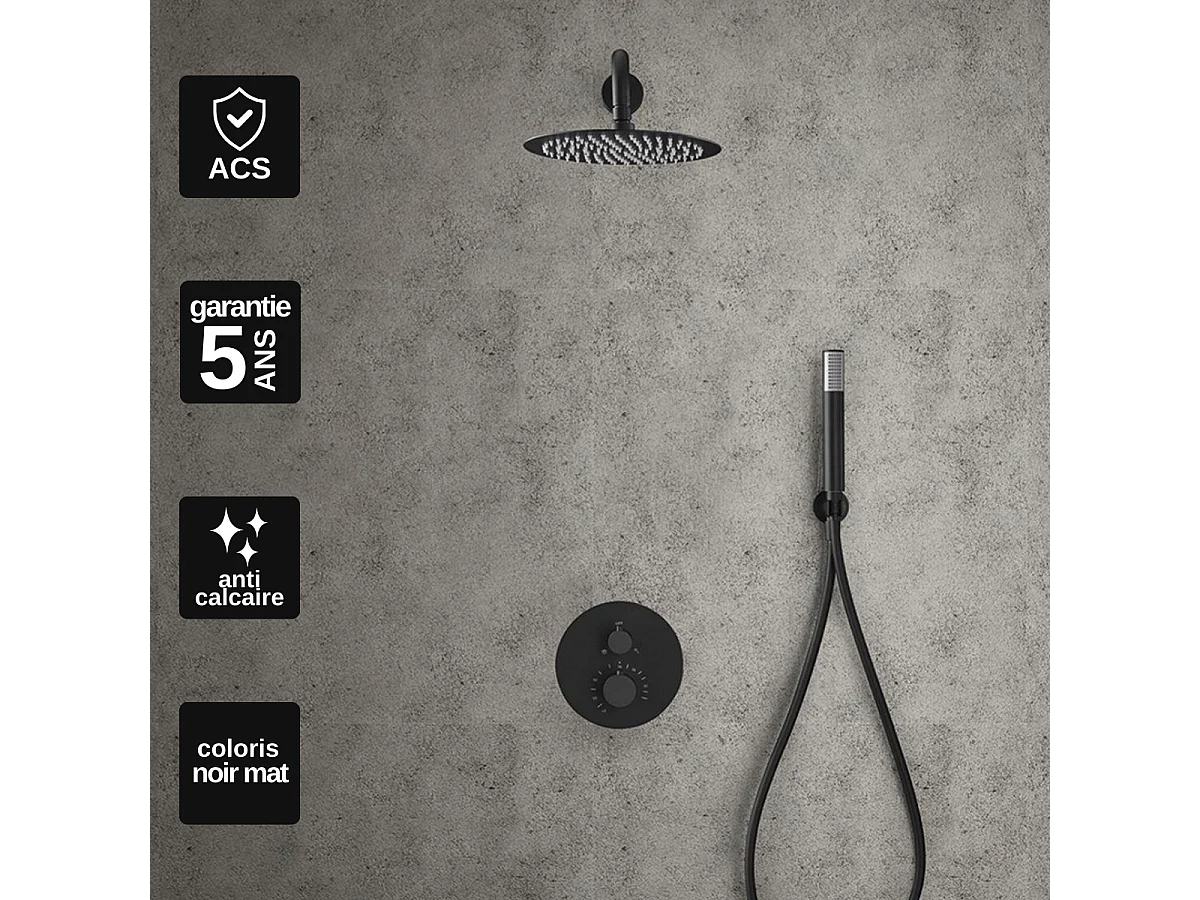 Colonne de Douche Encastrée avec Mitigeur Thermostatique noir mat anti-calcaire - Design Moderne - LINE IMEX