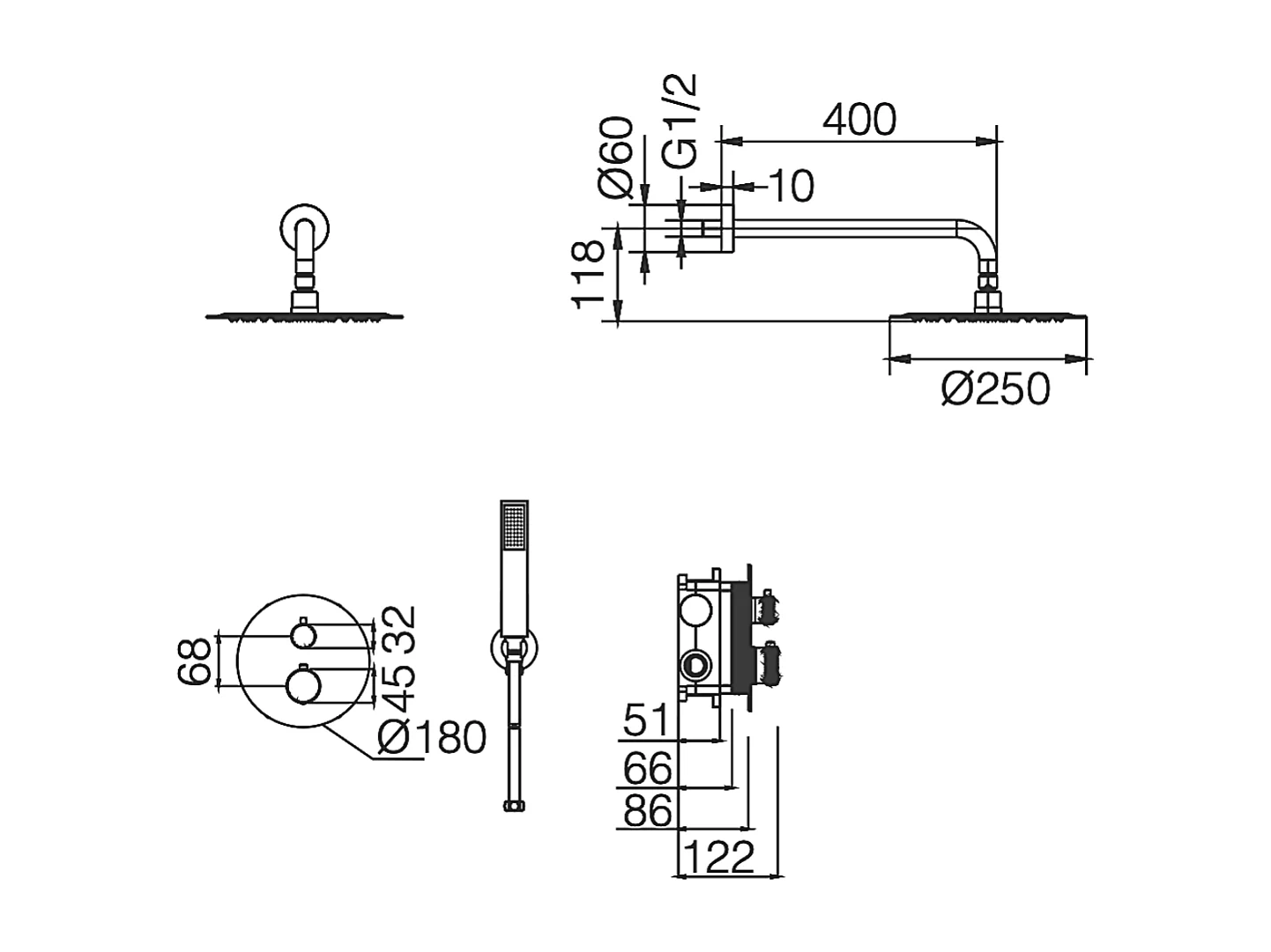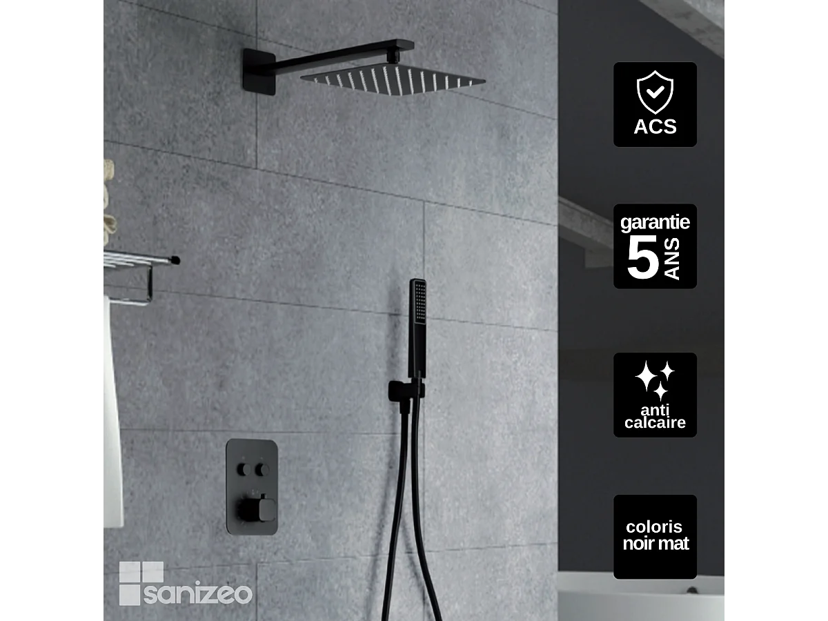 Colonne de Douche Encastrée avec Mitigeur Thermostatique noir mat anti-calcaire - Design Moderne - MADEIRA IMEX