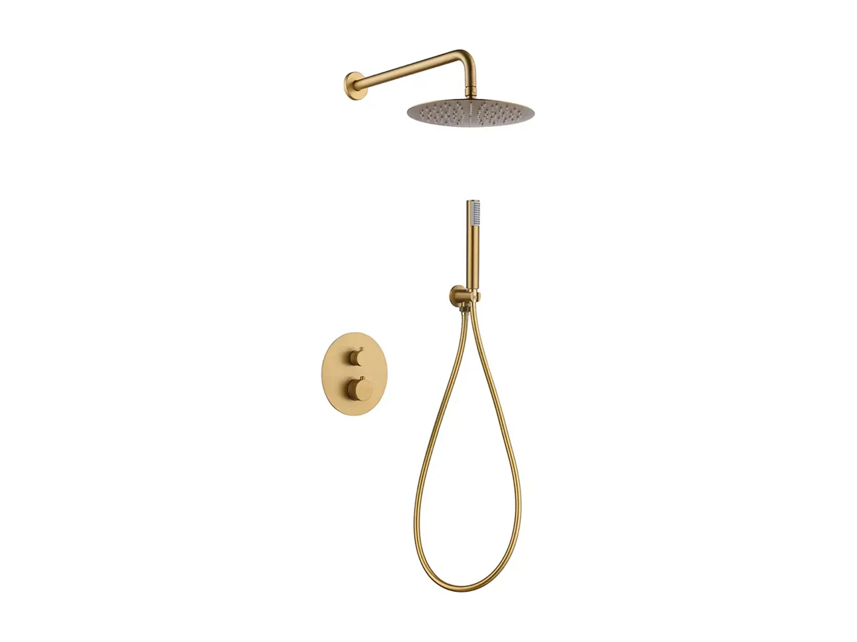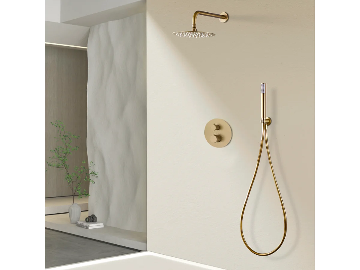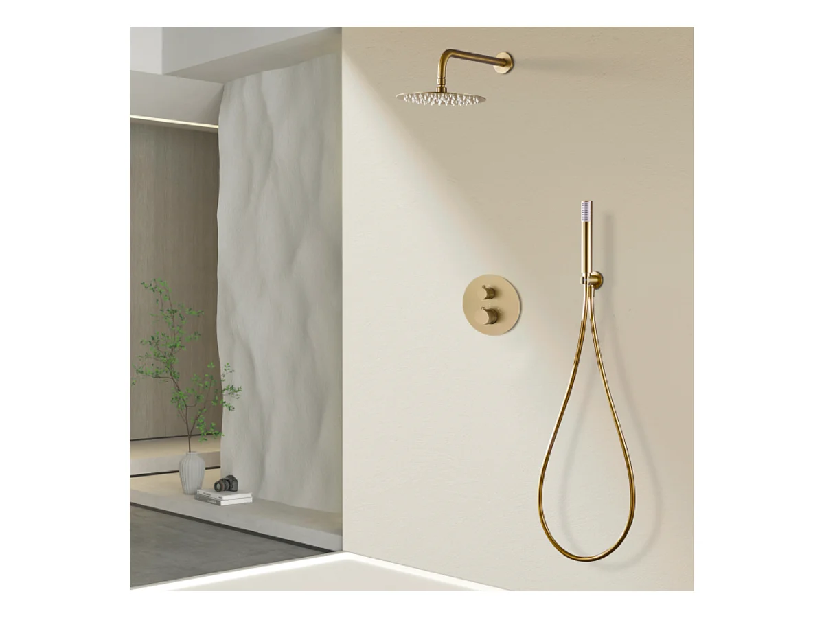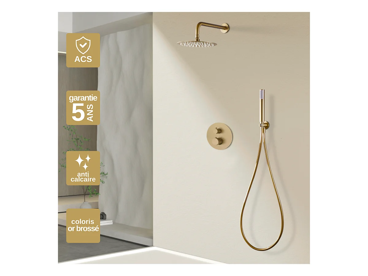 Colonne de Douche Encastrée avec Mitigeur Thermostatique or brossé anti-calcaire - Design Moderne - LINE IMEX