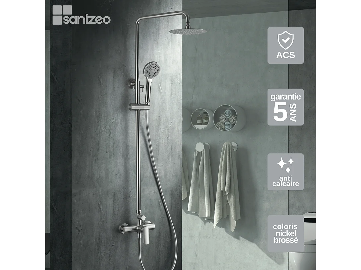 Colonne de Douche niquel brossé anti-calcaire - Design Moderne et Économie d'eau - Kit Complet URAL IMEX