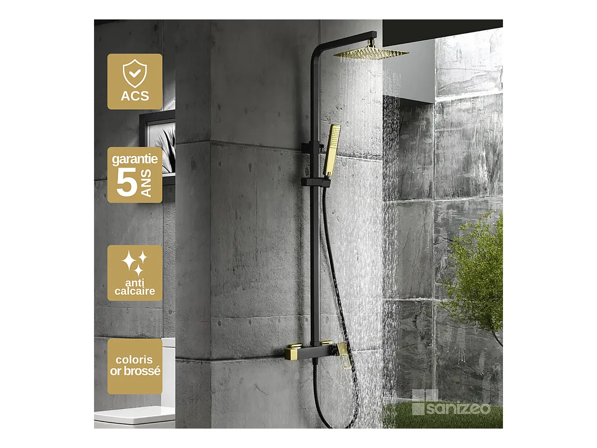 Colonne de Douche Noir/Or anti-calcaire - Design Moderne et Économie d'eau - Kit Complet SUECIA IMEX