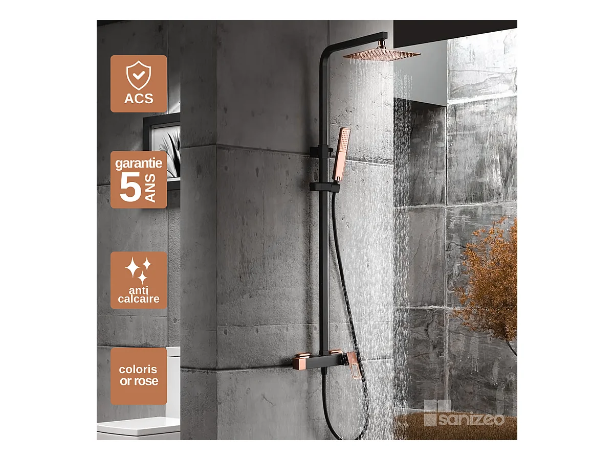 Colonne de Douche Noir/Or Rose anti-calcaire - Design Moderne et Économie d'eau - Kit Complet SUECIA IMEX