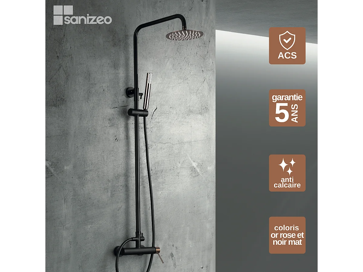 Colonne de Douche Anti-Calcaire Noir Mat et Or Rose Cuivré MILOS STICK BDYS045/NOR