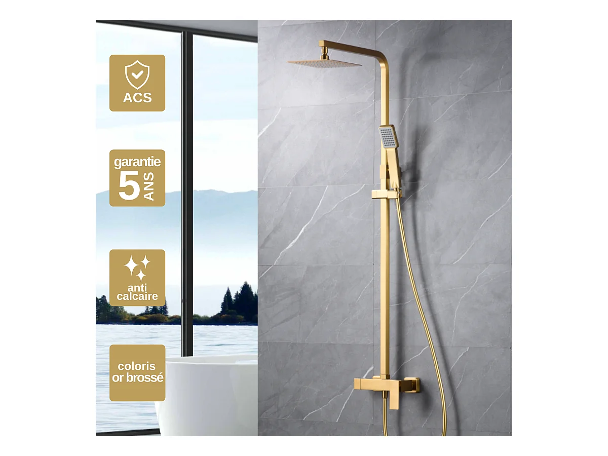 Colonne de Douche or brossé anti-calcaire - Design Moderne et Économie d'eau - Kit Complet PISA IMEX