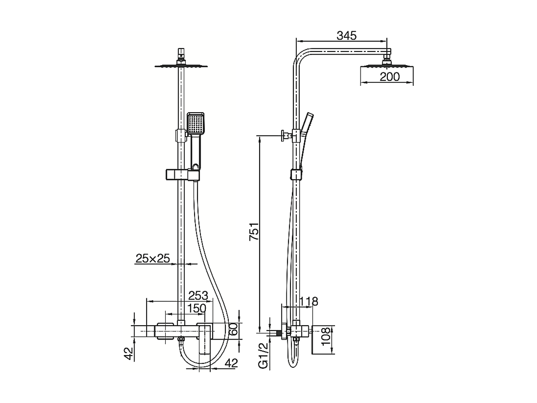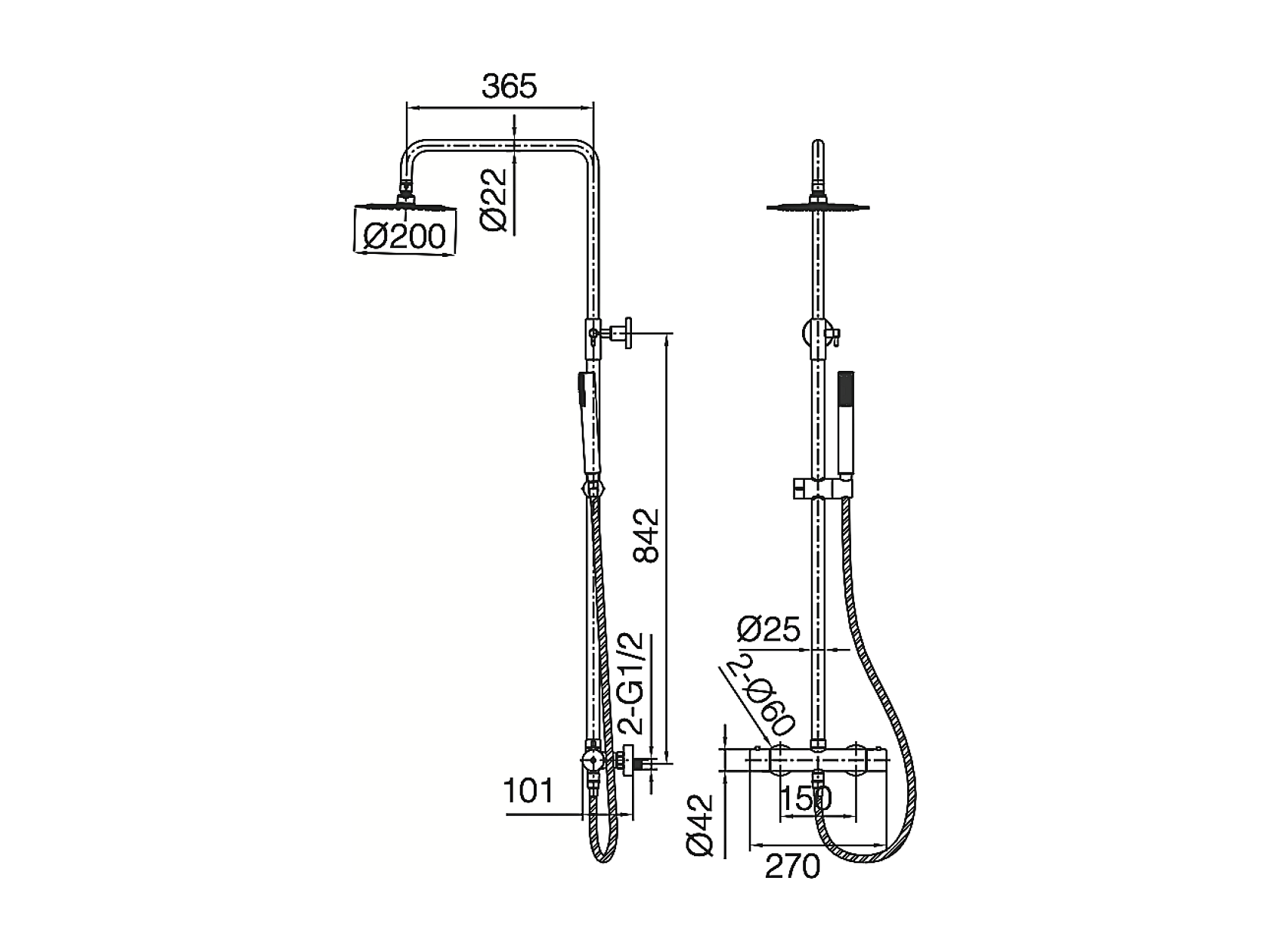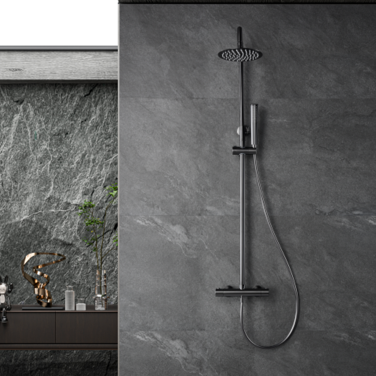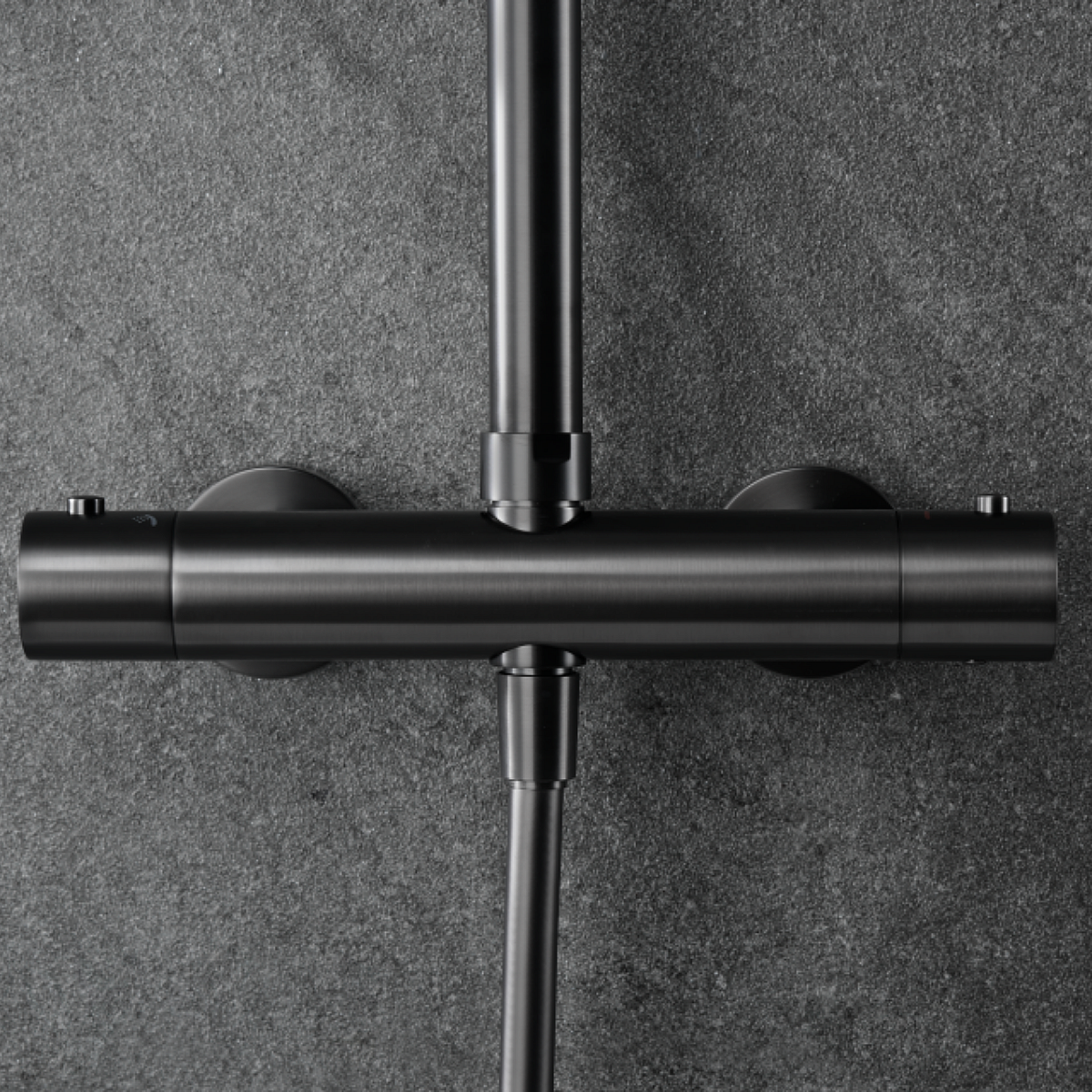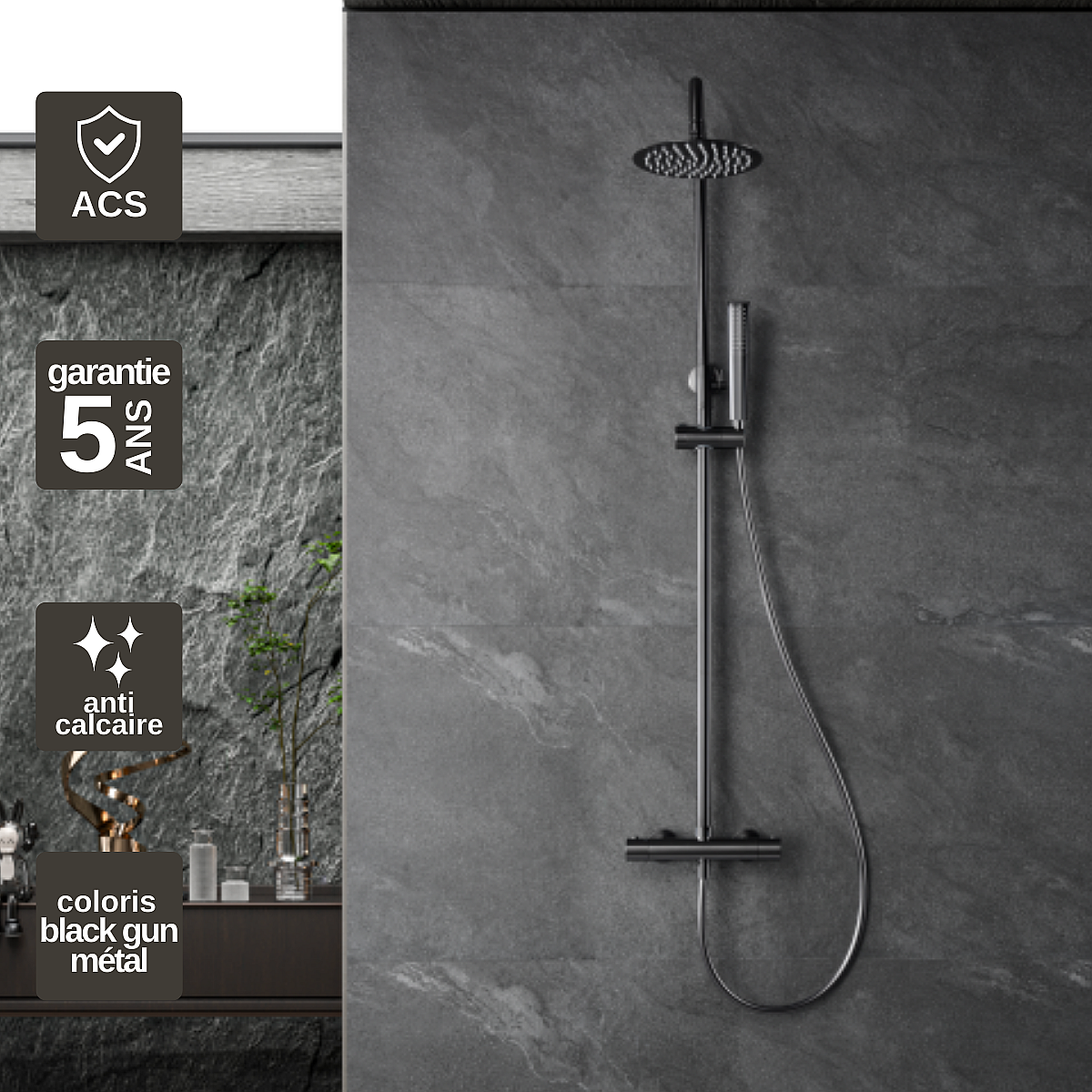 Colonne de Douche avec Mitigeur Thermostatique noir métal anti-calcaire - Design Moderne - NAPOLES IMEX