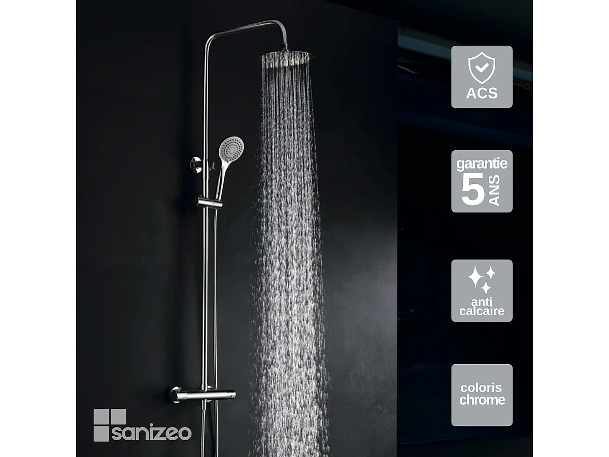 Colonne de Douche avec Mitigeur Thermostatique chromé anti-calcaire - Design Moderne - CRETA IMEX