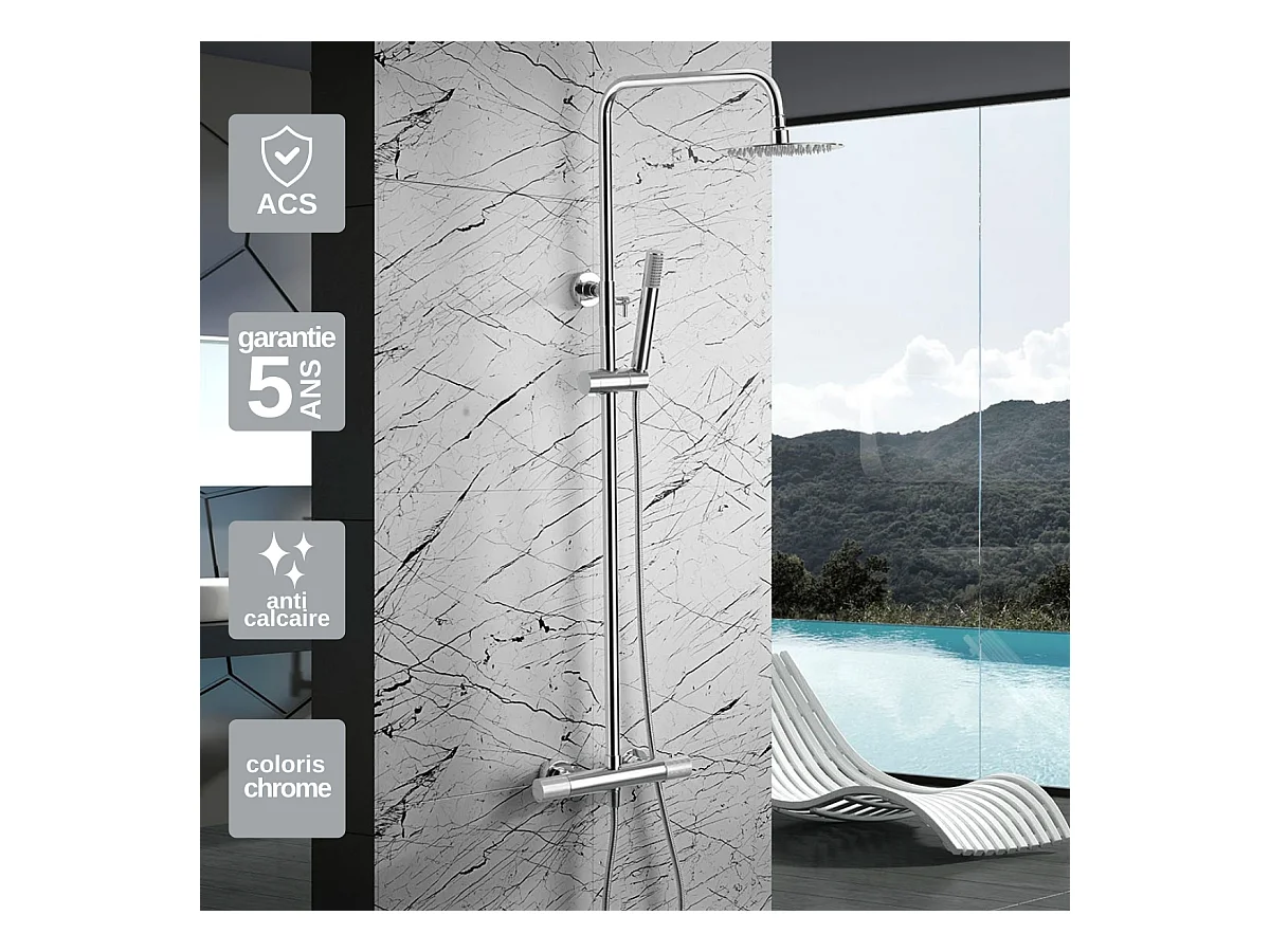 Colonne de Douche avec Mitigeur Thermostatique chromé anti-calcaire - Design Moderne - MONZA IMEX