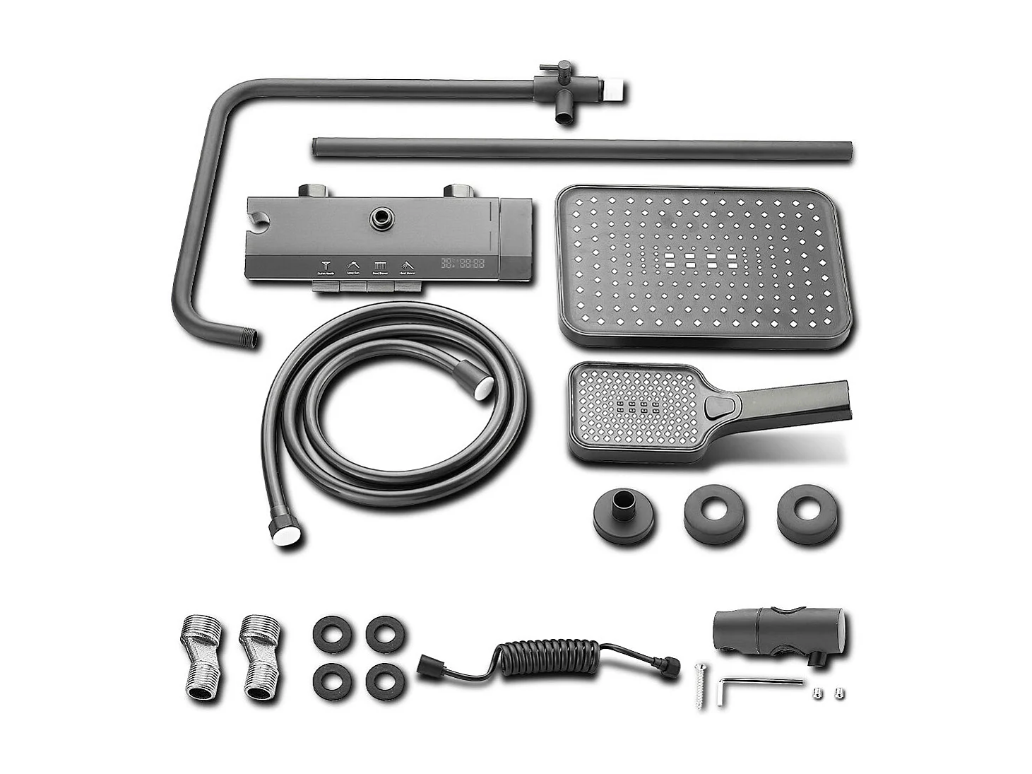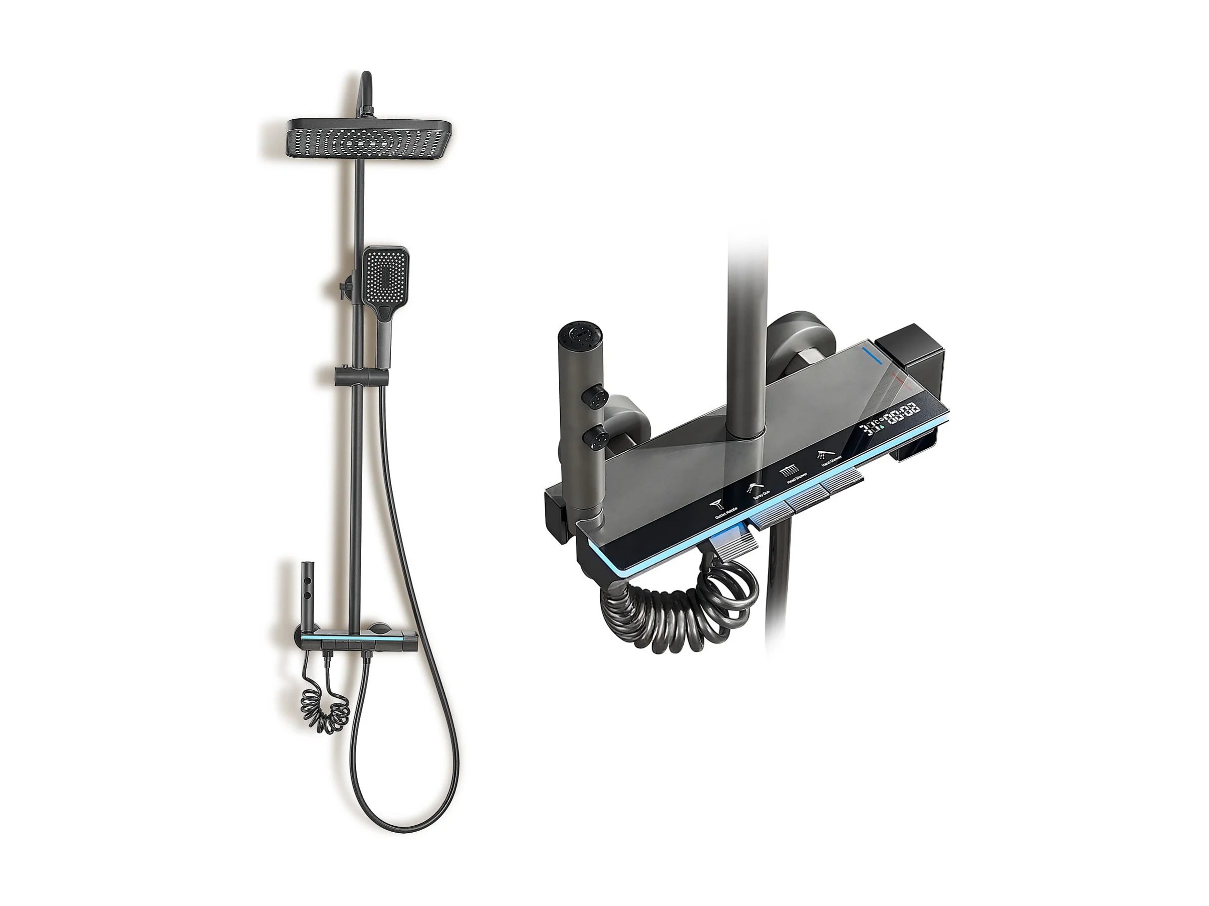 Colonne de douche en alliage de titane gris, pomme de douche rectangulaire, 4 modes de jet, affichage LED ciel étoilé, douchette à main réglable