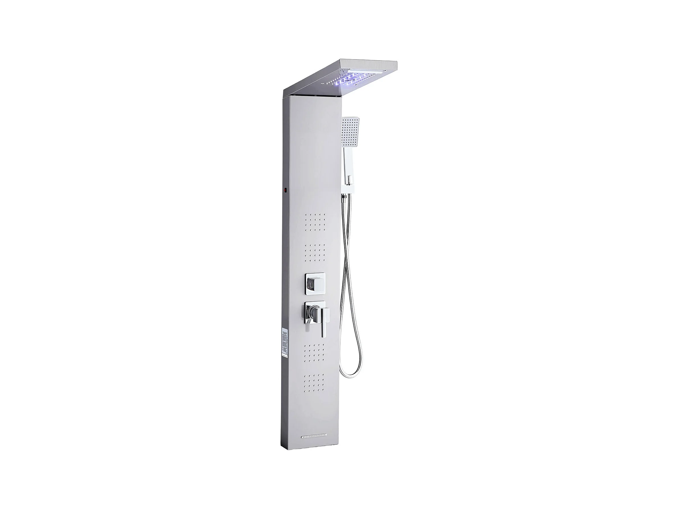 Colonne de Douche avec Pommeau de Douche Effet Pluie SucceBuy en Acier Inoxydable, Robinet 5 Fonctions, 4 Jets Corporels et Douchette à Main, 1345 mm