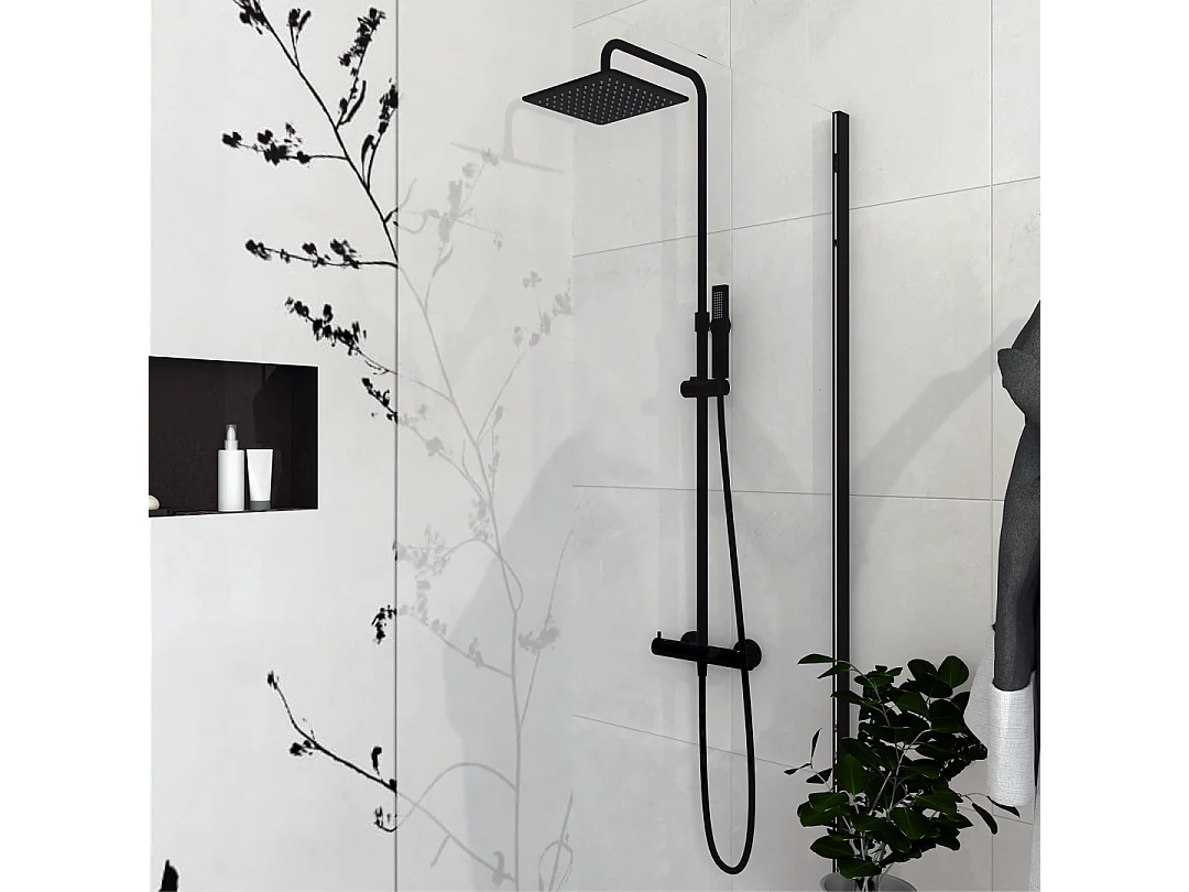 Colonne De Douche Carrée Avec Thermostat Noir Mat