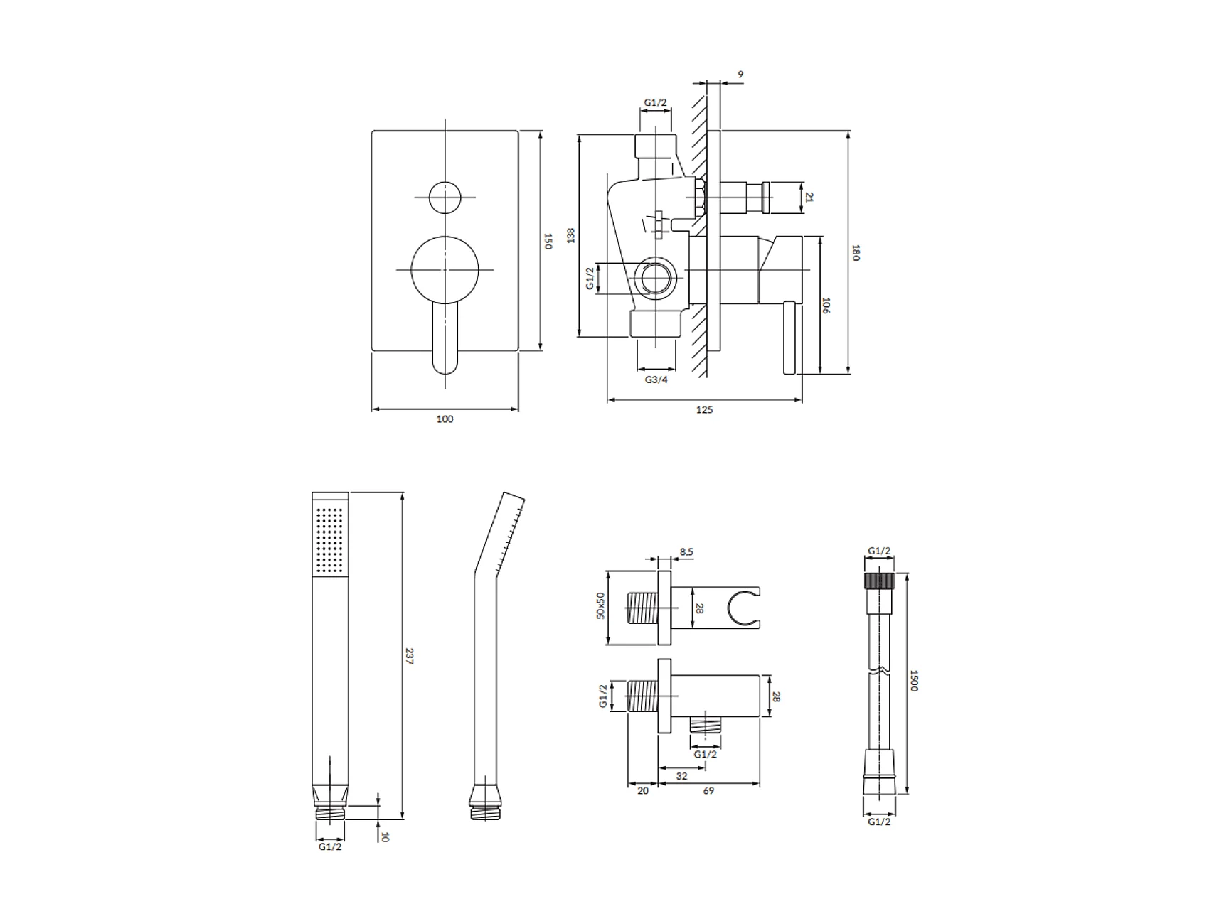 Colonne de douche DARLING encastrable or