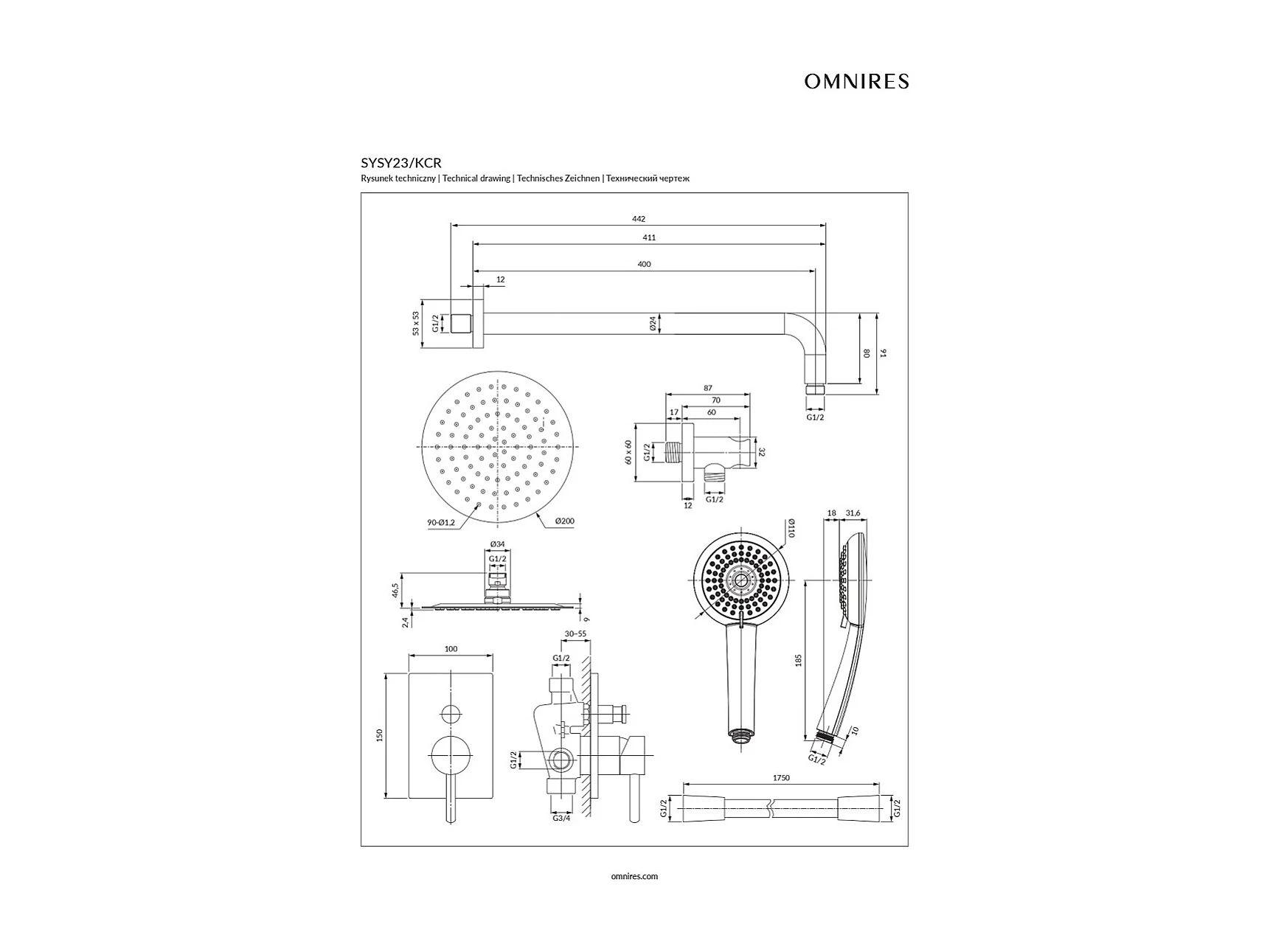 Colonne de douche encastrable - Y - Chrome