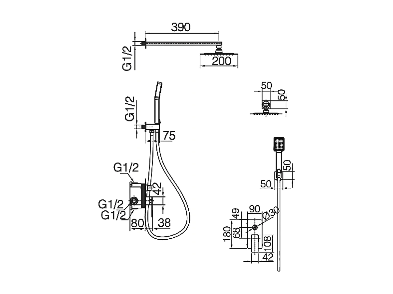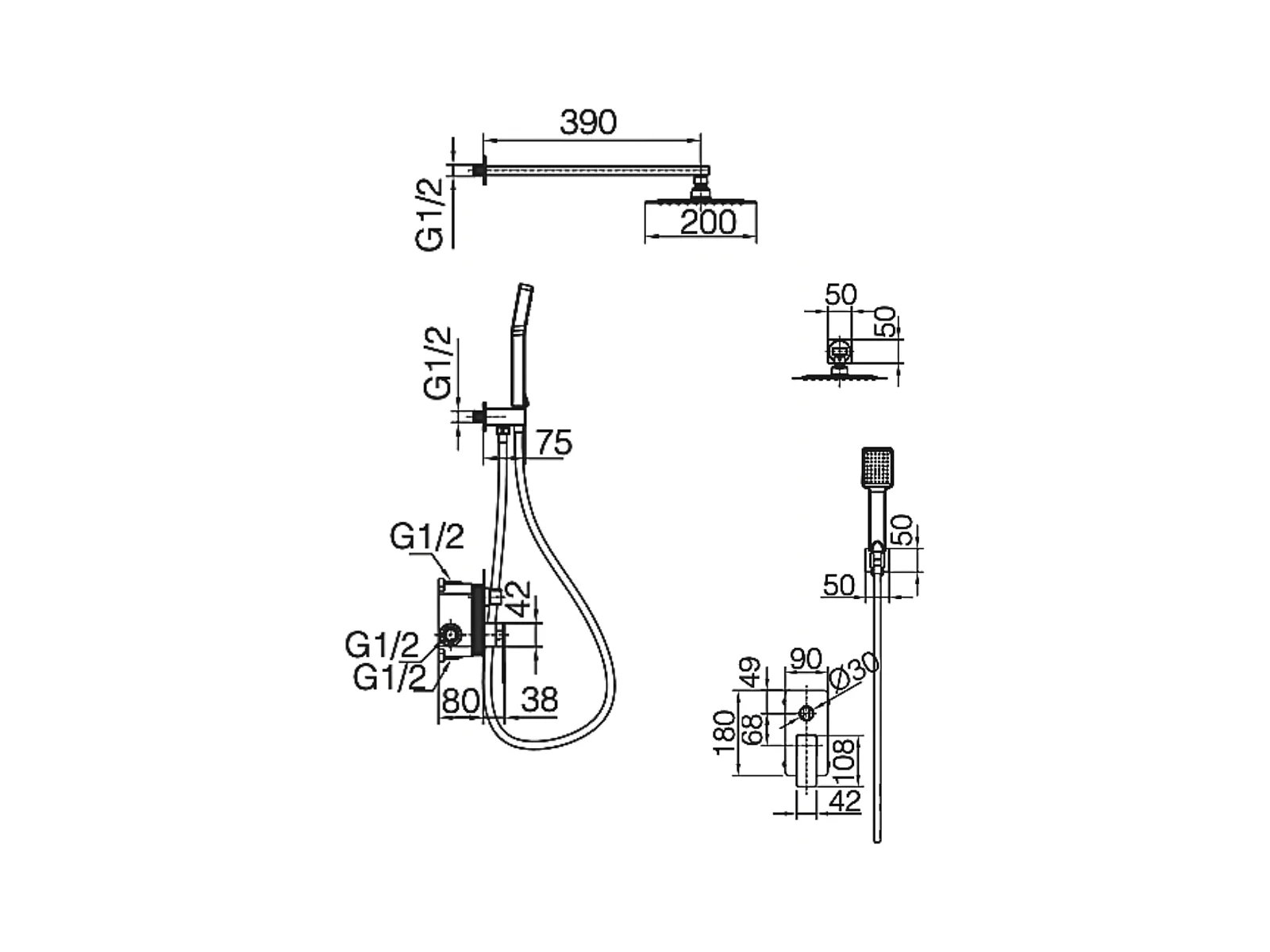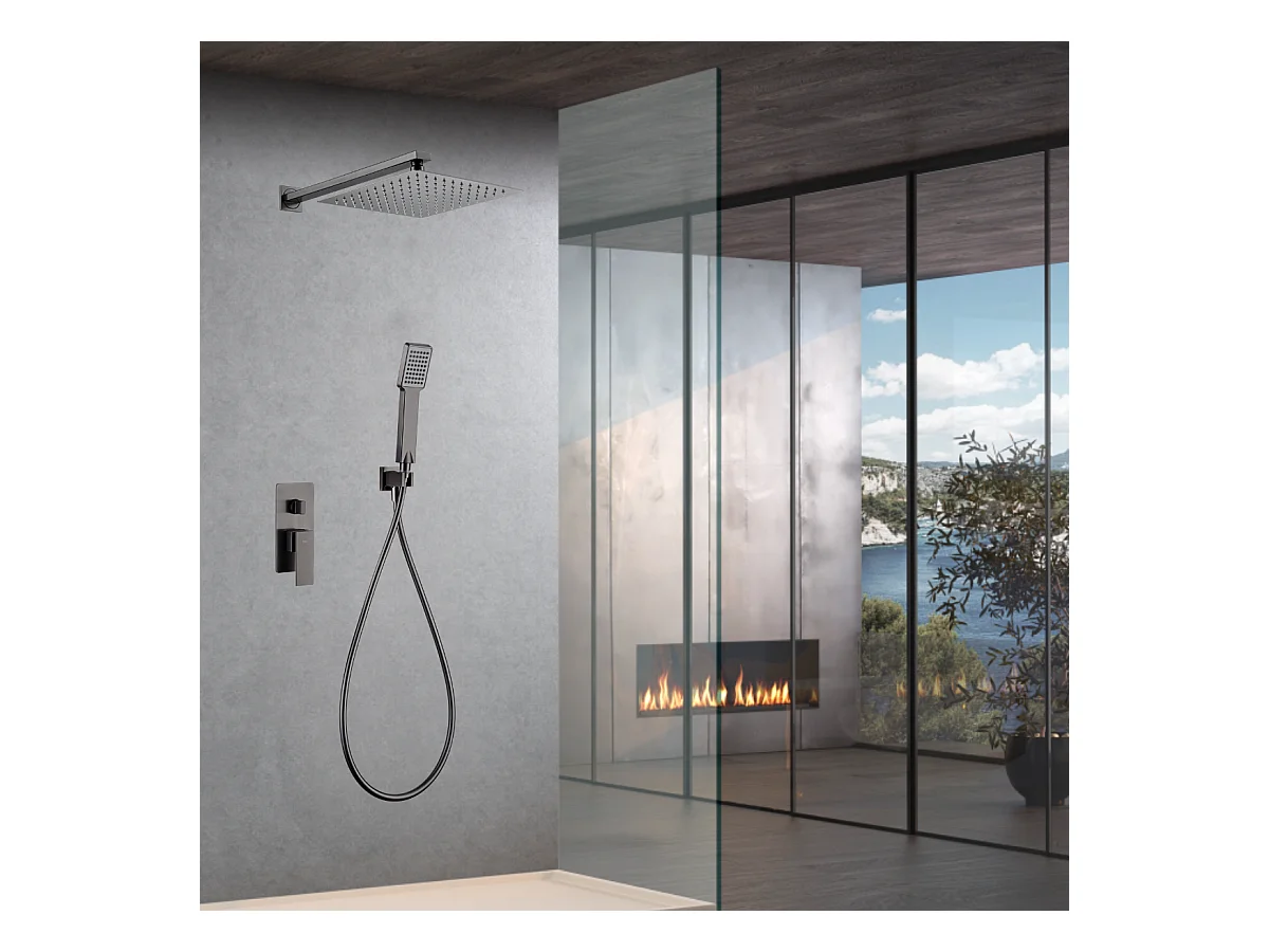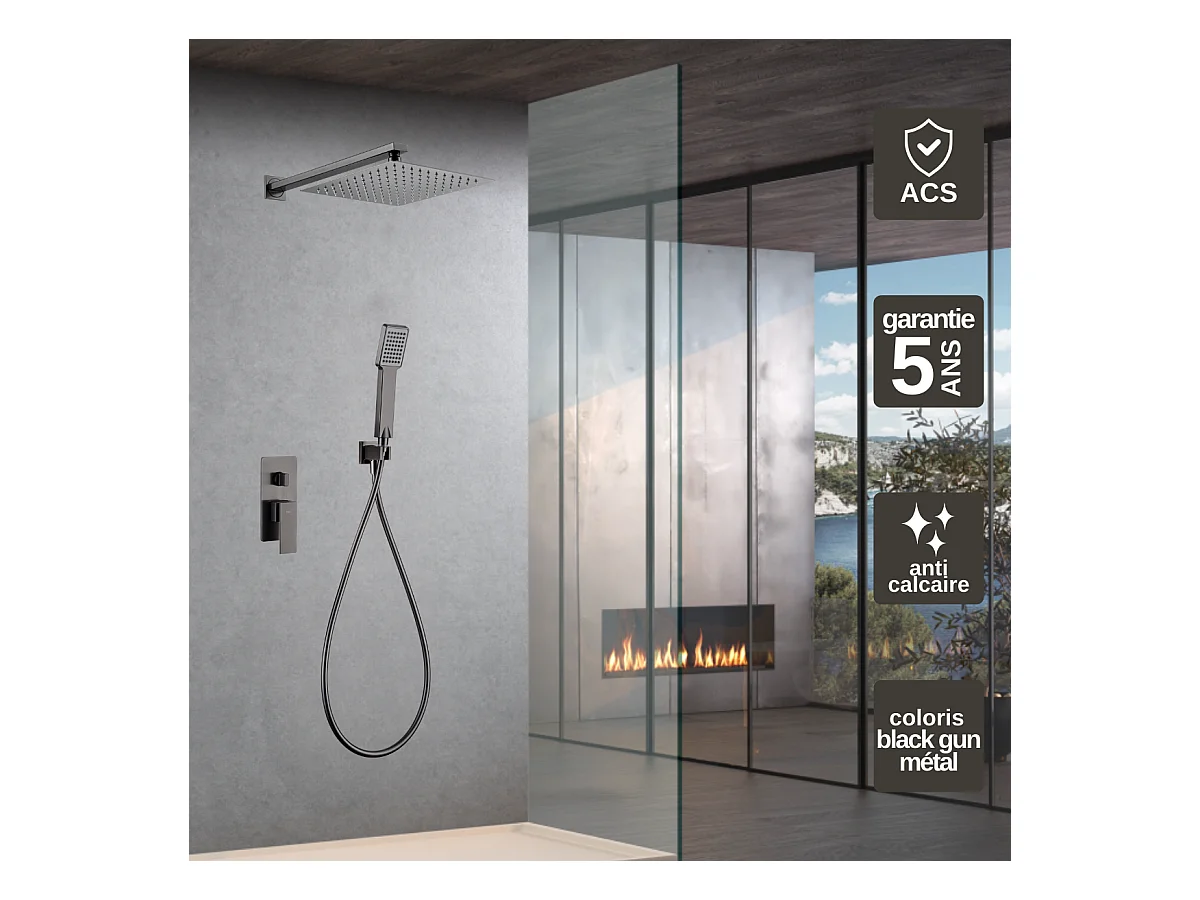 Colonne de Douche Encastrée noir métal anti-calcaire - Design Moderne et Économie d'eau - Kit Complet PISA IMEX