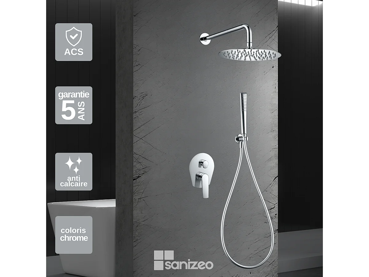 Colonne de Douche Encastrée chromé anti-calcaire - Design Moderne et Économie d'eau - Kit Complet DELOS IMEX