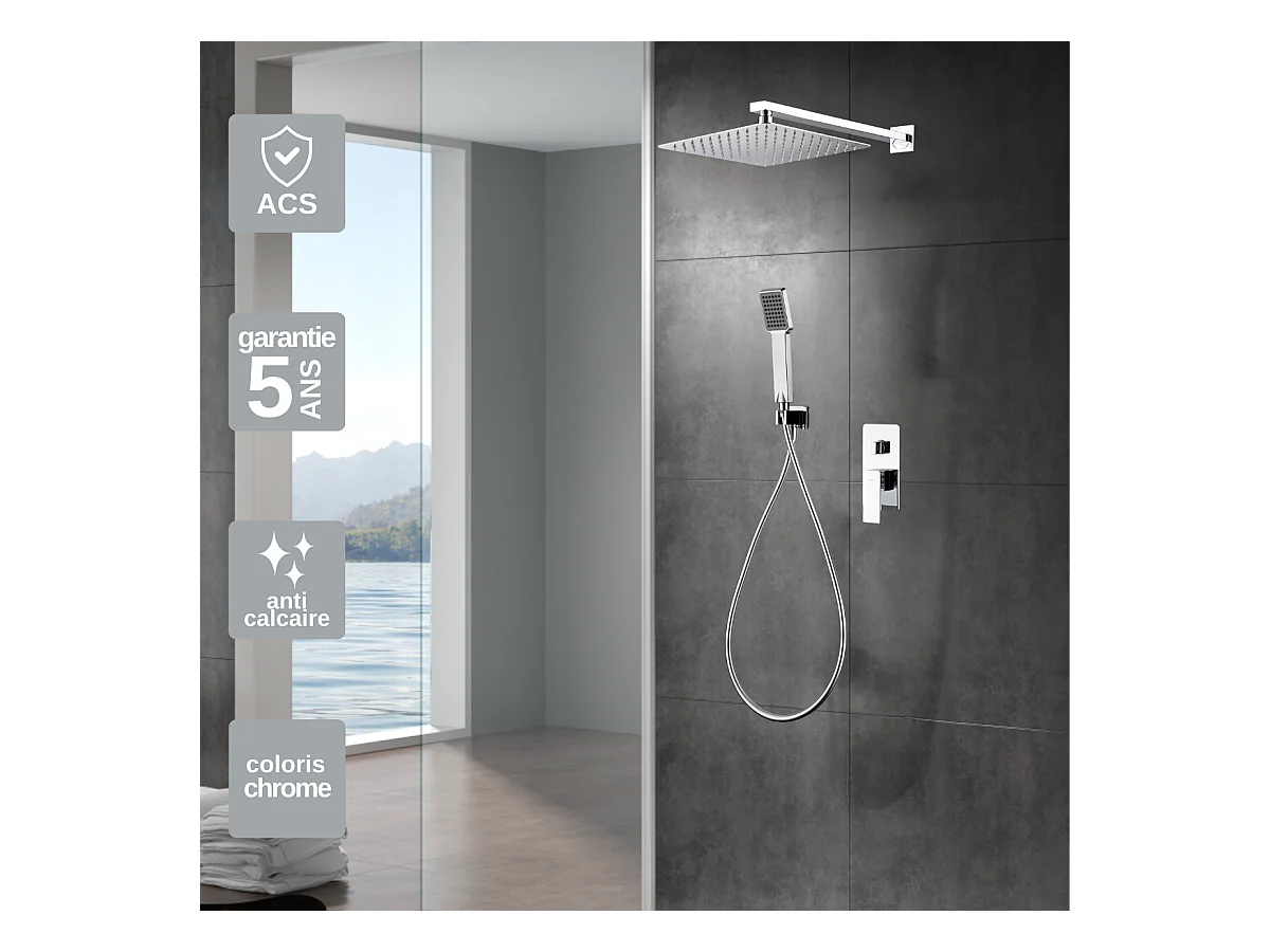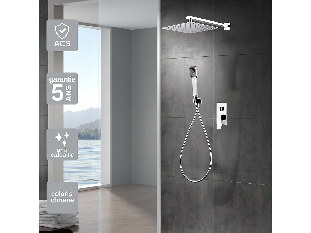 Colonne de Douche Encastrée chromé anti-calcaire - Design Moderne et Économie d'eau - Kit Complet PISA IMEX