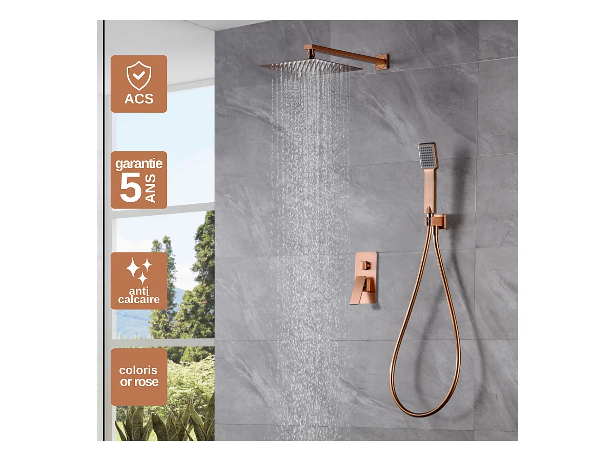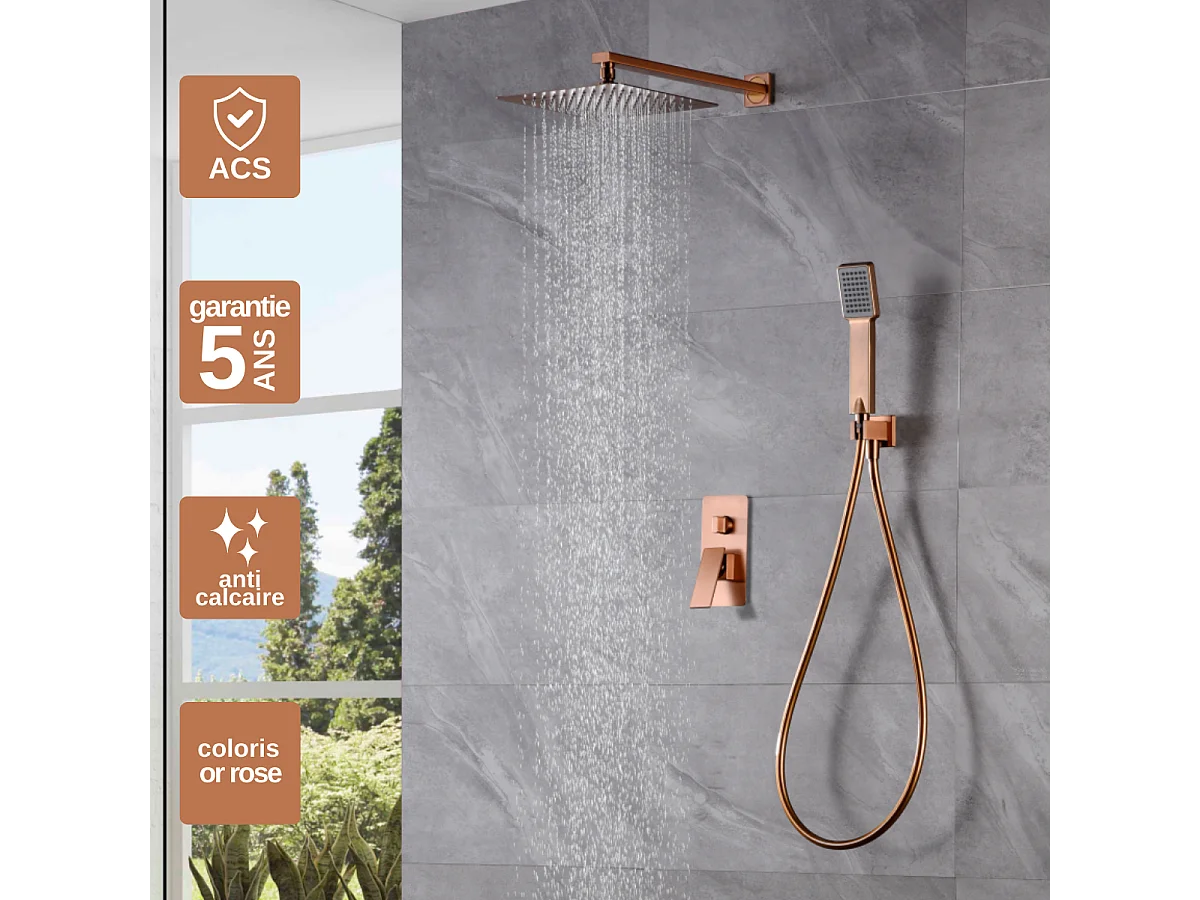 Colonne de Douche Encastrée or rose brossé anti-calcaire - Design Moderne et Économie d'eau - Kit Complet PISA IMEX