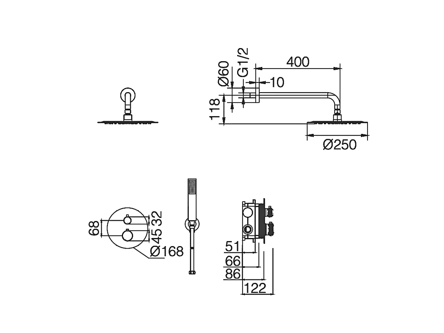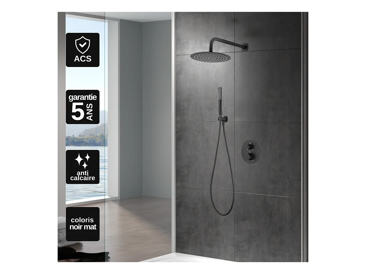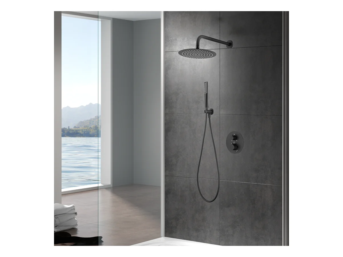 Colonne de Douche Encastrée avec Mitigeur Thermostatique noir mat anti-calcaire - Design Moderne - NAPOLES IMEX