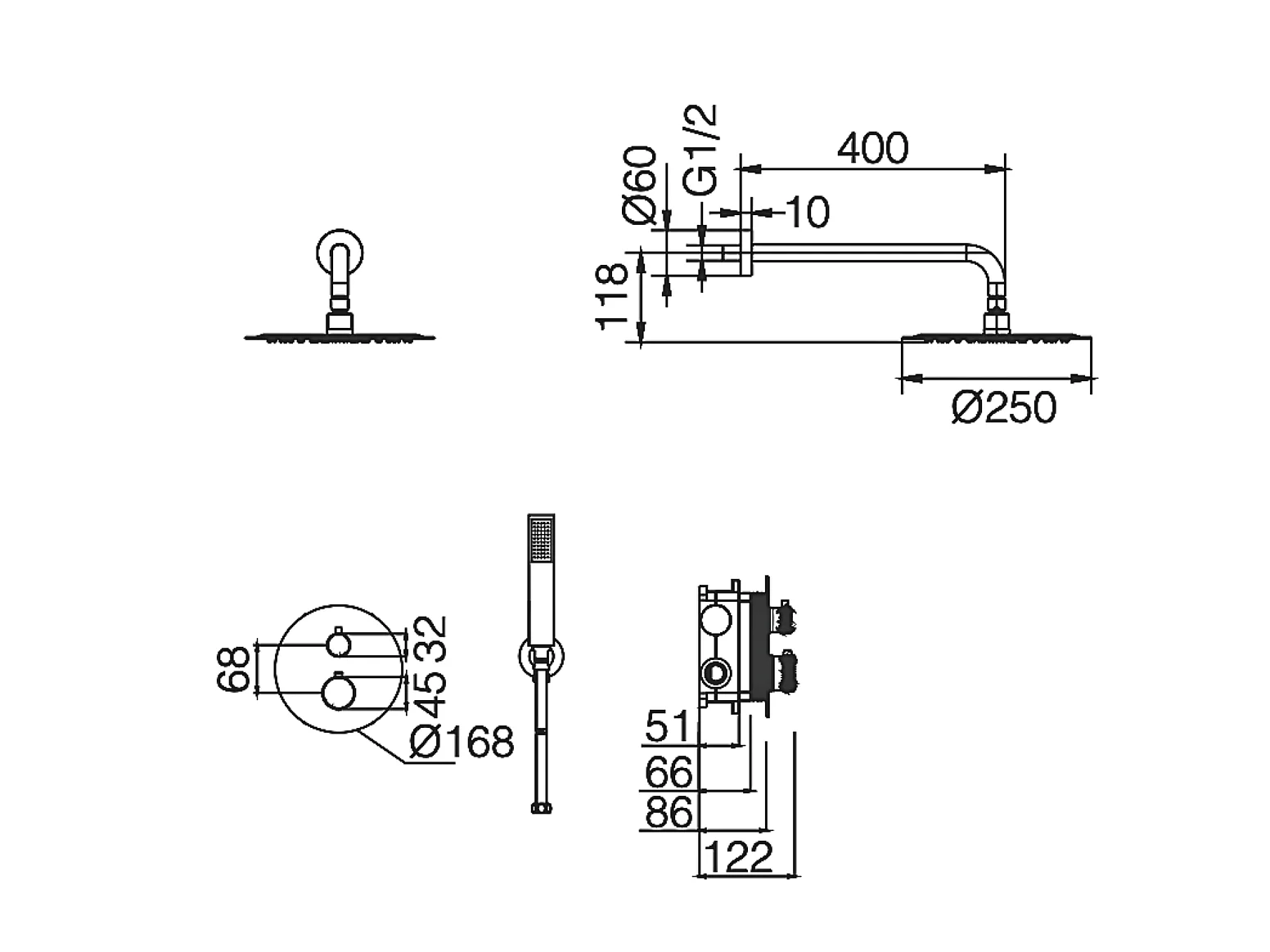 Colonne de Douche Encastrée avec Mitigeur Thermostatique or brossé anti-calcaire - Design Moderne - NAPOLES IMEX
