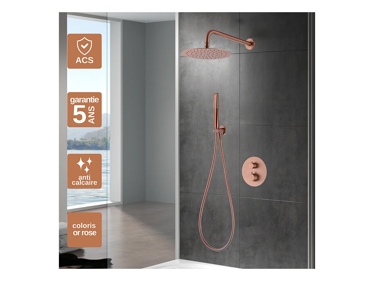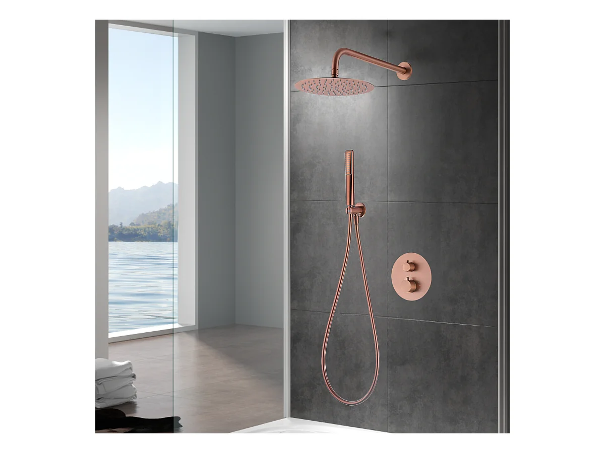Colonne de Douche Encastrée avec Mitigeur Thermostatique or rose cuivré anti-calcaire - Design Moderne - NAPOLES IMEX