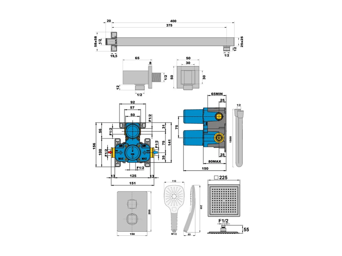 Colonne de douche encastrée carré PAINI Ruby Noir Mat