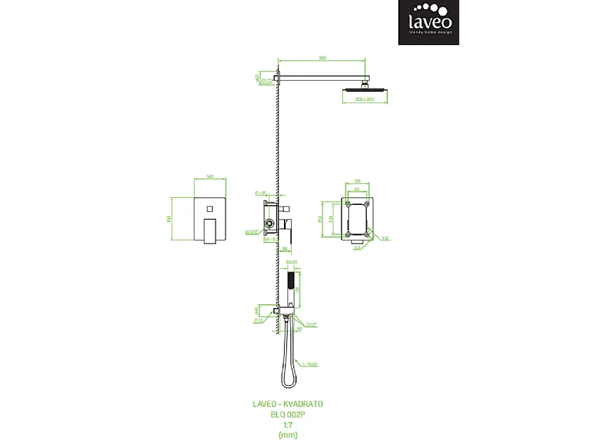 Colonne de douche encastrée Kvadrato, Couleur: Chrome