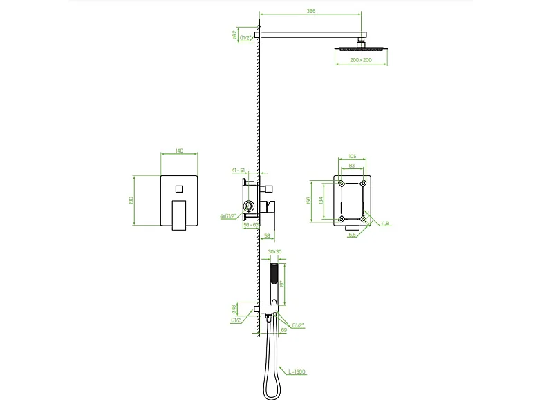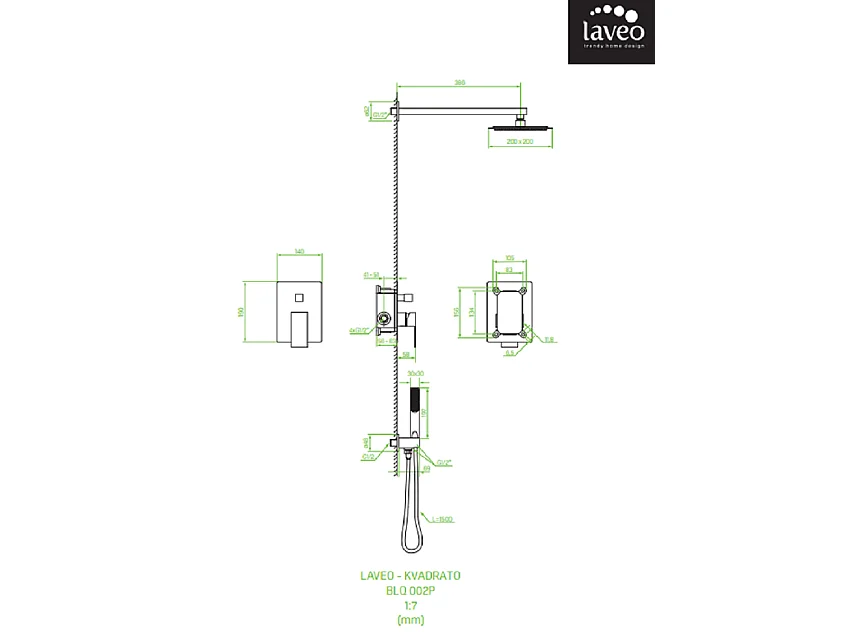 Colonne de douche encastrée Kvadrato, Couleur: Noir