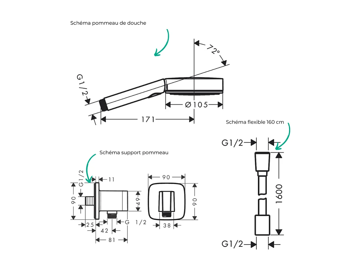Colonne de douche encastrée mécanique HANSGROHE Vernis Blend Douche de tête Crometta Flexible Designflex Douchette Pulsify chromé