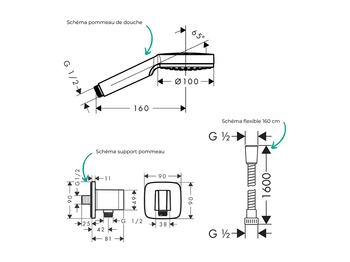 Colonne de douche encastrée mécanique HANSGROHE Vernis Blend Douche de tête Crometta Flexible Métaflex Douchette Crometta chromé