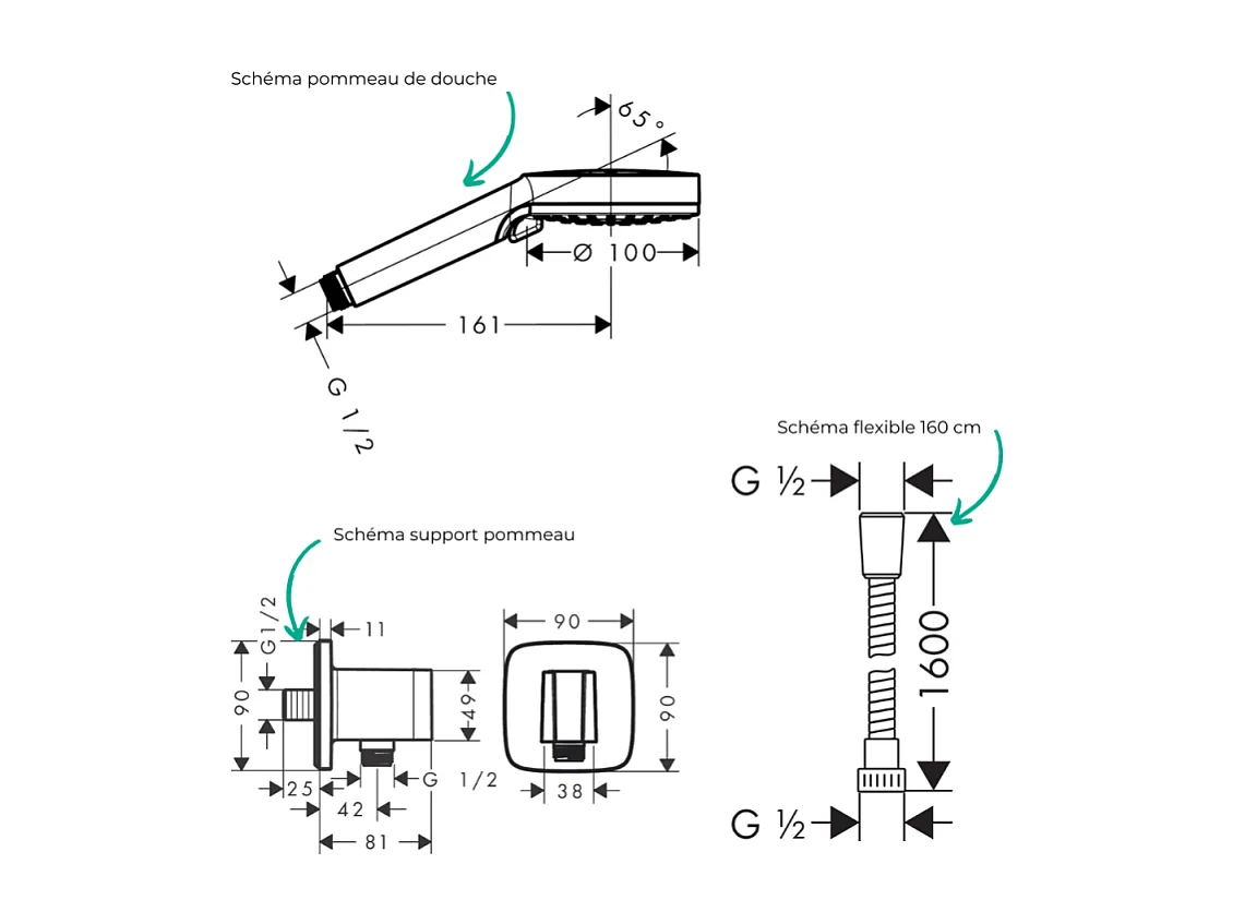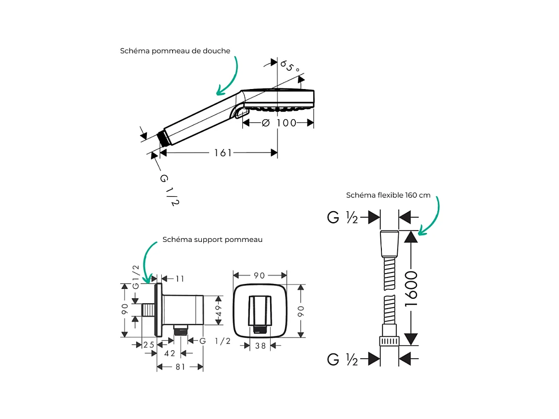 Colonne de douche encastrée mécanique HANSGROHE Vernis Blend Douche de tête Crometta Douchette Vernis Blend chromé
