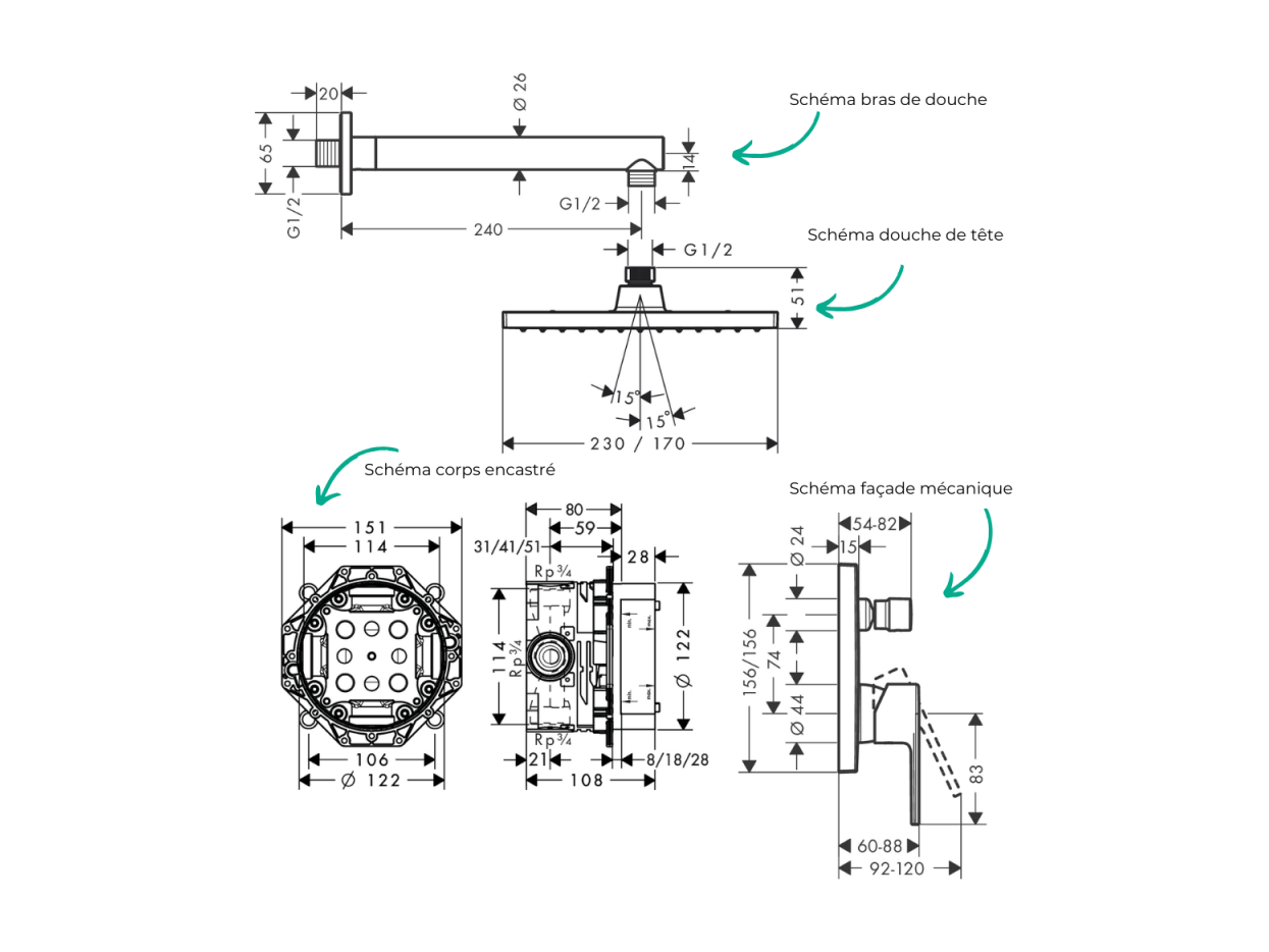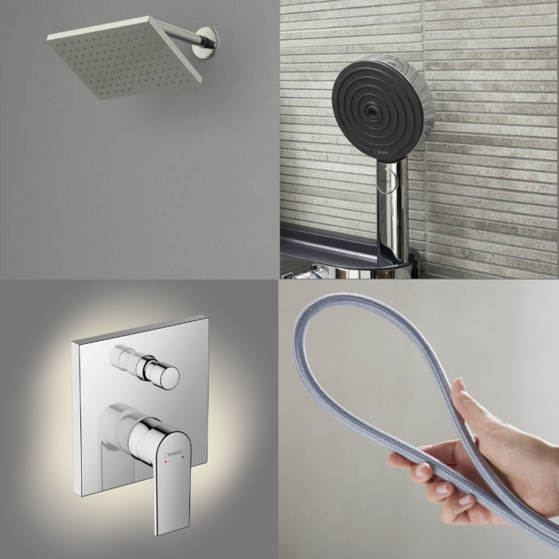 Colonne de douche mécanique HANSGROHE Vernis Shape Douche de tête Vernis Shape Flexible Designflex Douchette Pulsify chromé