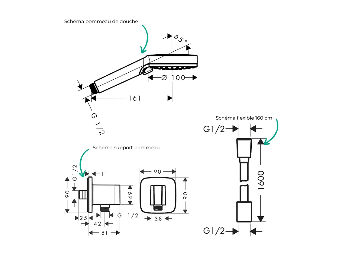 Colonne de douche encastrée mécanique HANSGROHE Vernis Shape Douche de tête Vernis Shape Flexible Isiflex Douchette Vernis noir