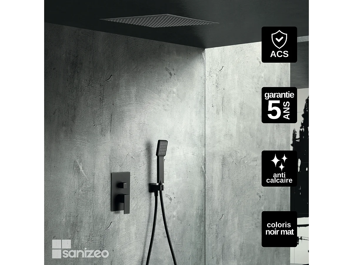 Colonne de Douche Encastrée noir mat anti-calcaire - Design Moderne et Économie d'eau - Kit Complet VOLGA IMEX