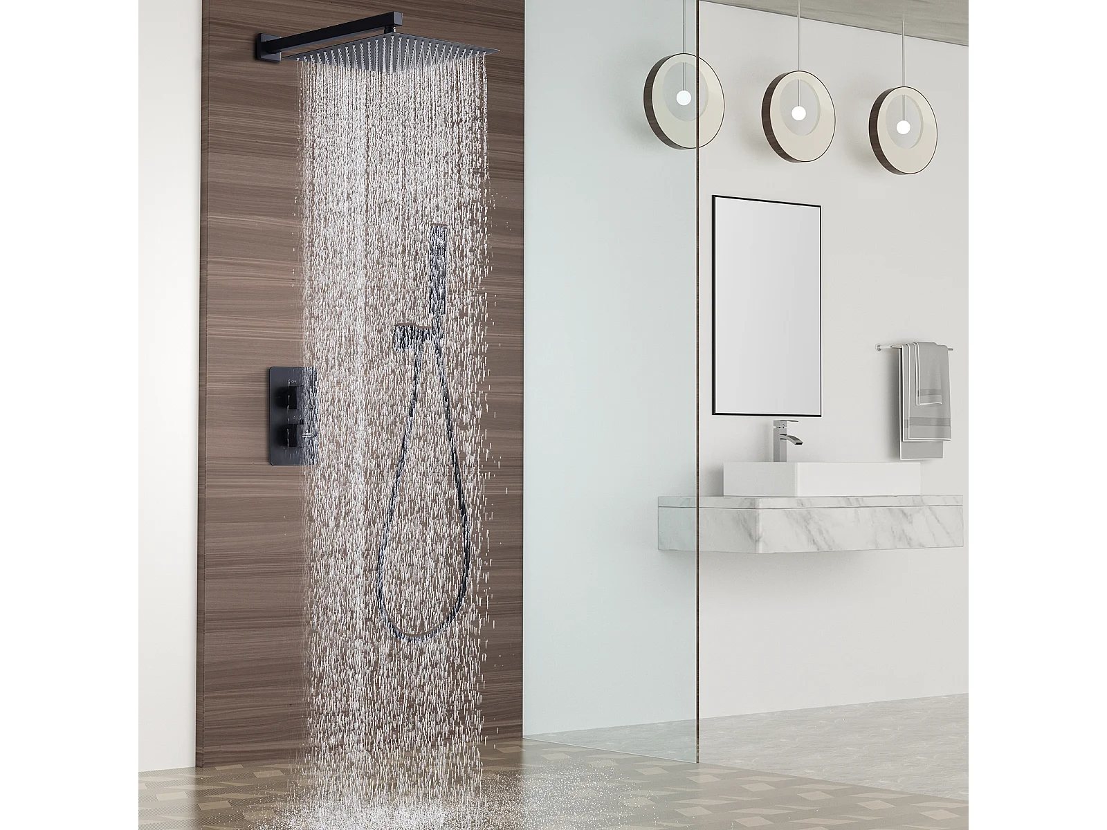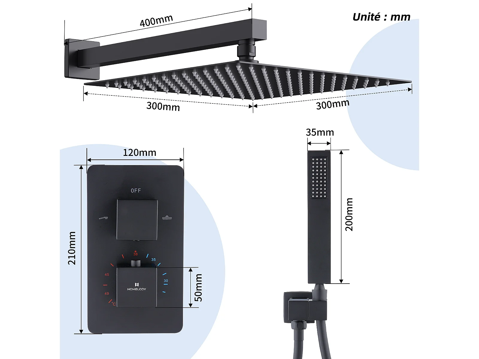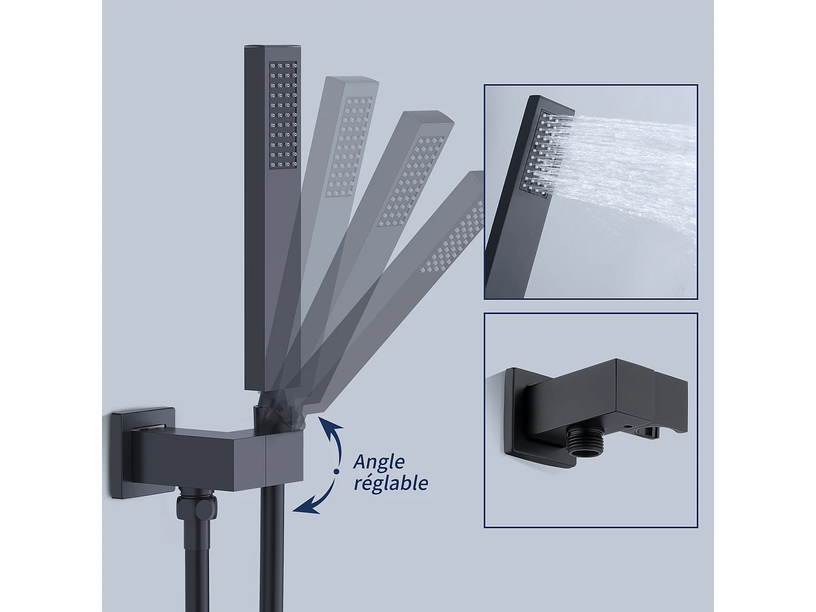 Colonne de Douche Encastrée Noir Système de Douche Thermostat en Laiton avec Tête de Douche Carrée 30*30CM HOMELODY