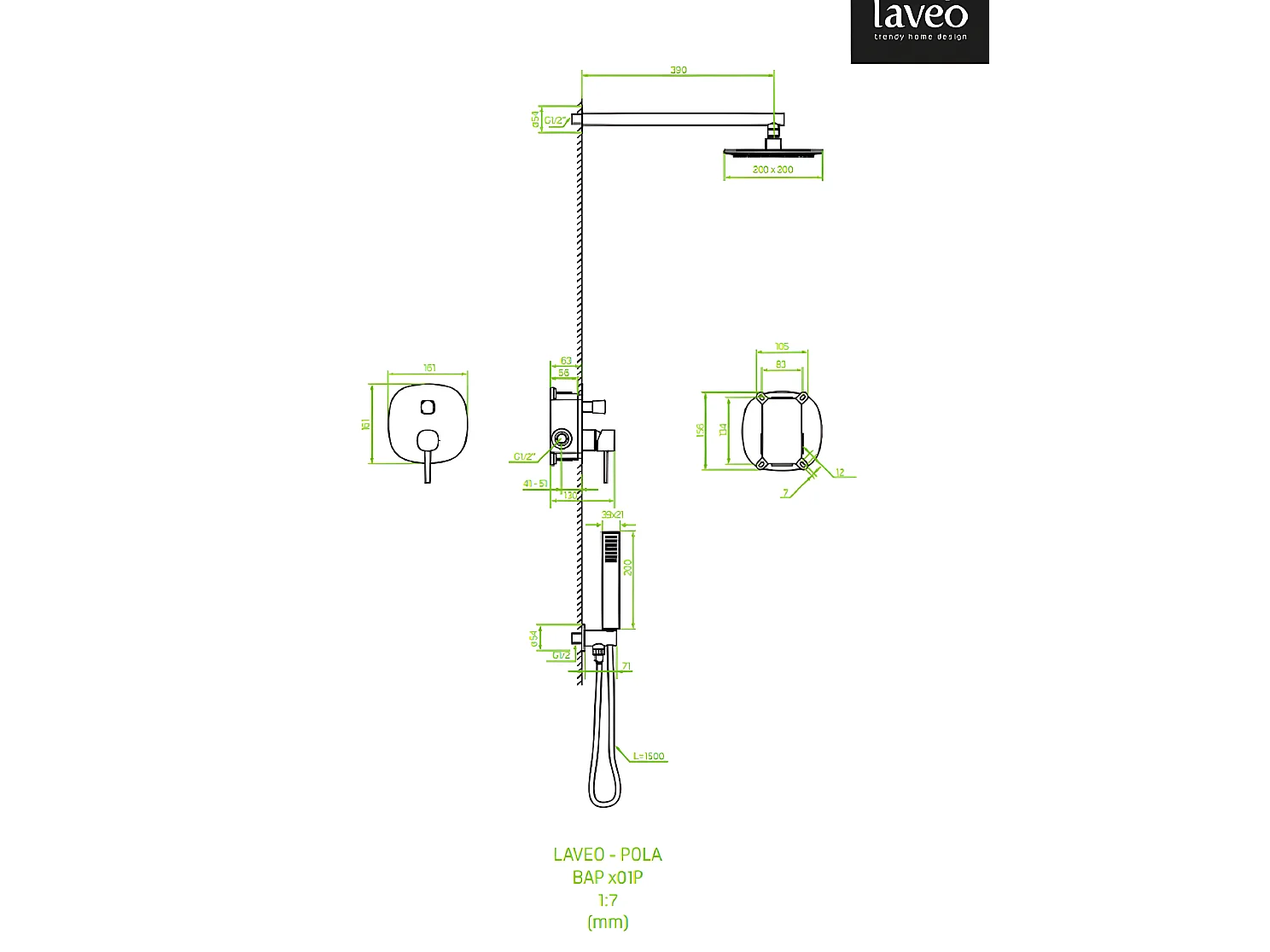 Colonne de douche encastrée Pola, Couleur: Rose Gold