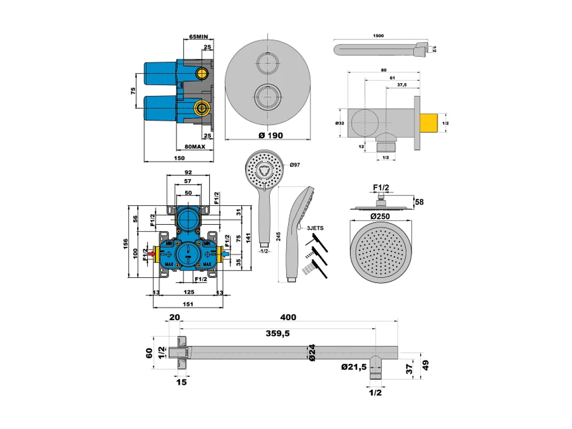 Colonne de douche encastrée ronde PAINI Ruby Noir Mat