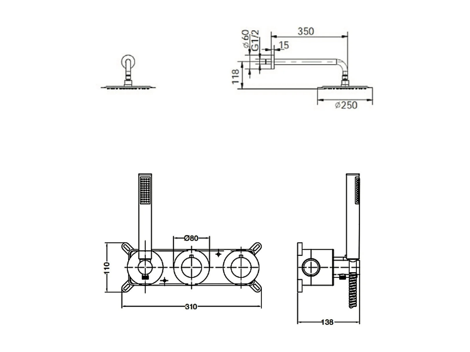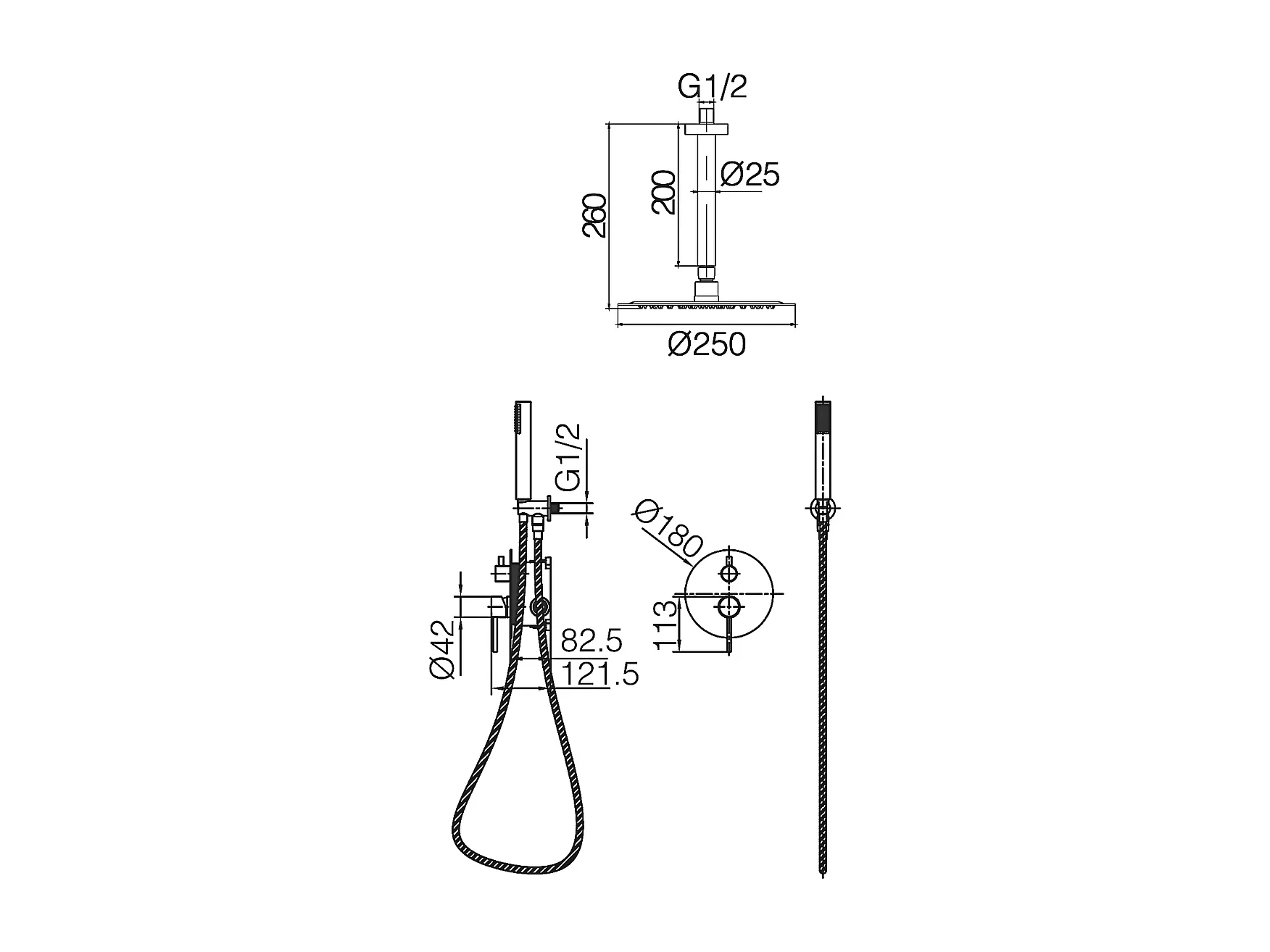 Colonne de Douche Encastrée avec Mitigeur Thermostatique noir métal anti-calcaire - Design Moderne - ASSEN IMEX