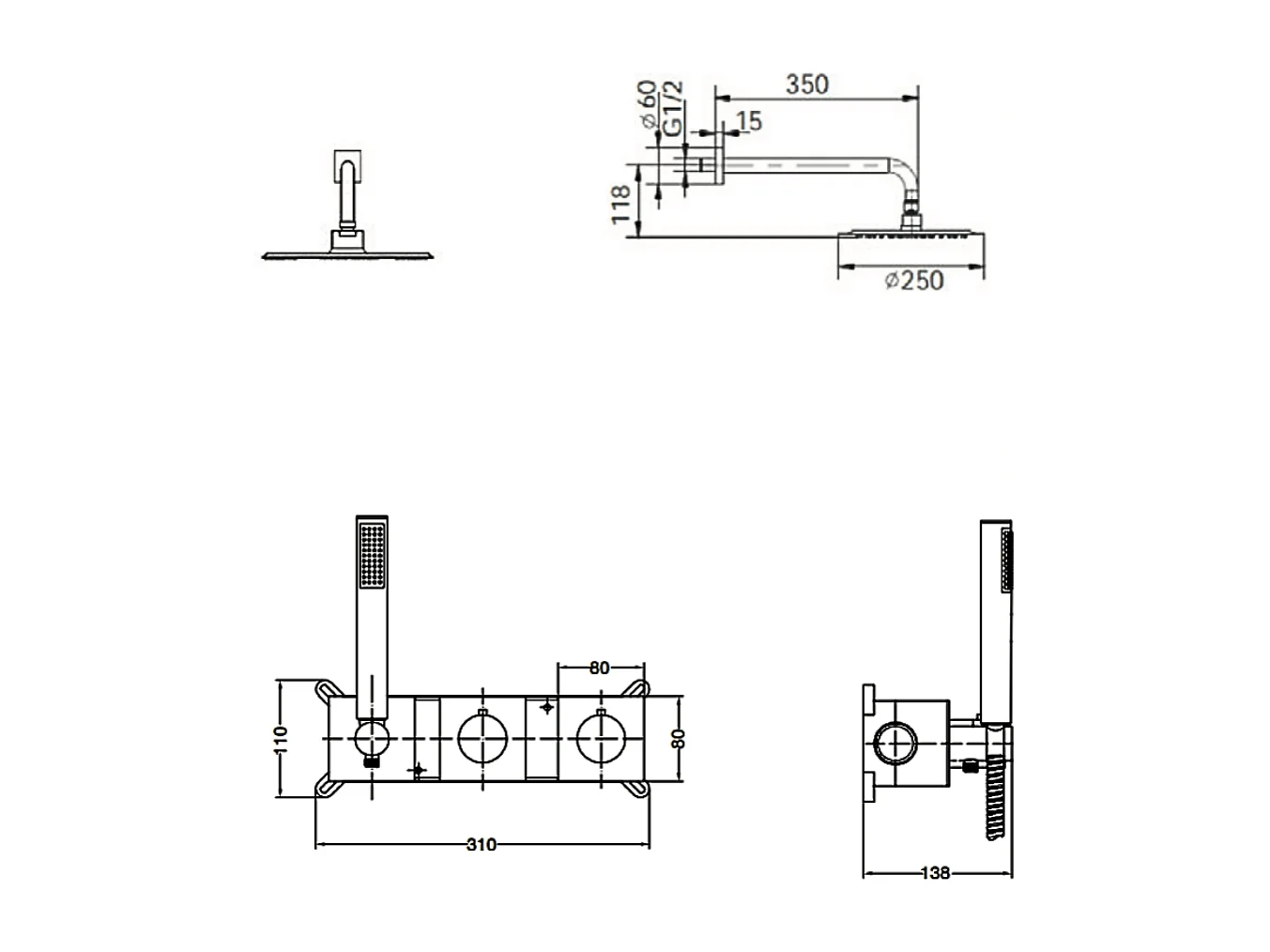 Colonne de Douche Encastrée avec Mitigeur Thermostatique chromé anti-calcaire - Design Moderne - TIBET IMEX