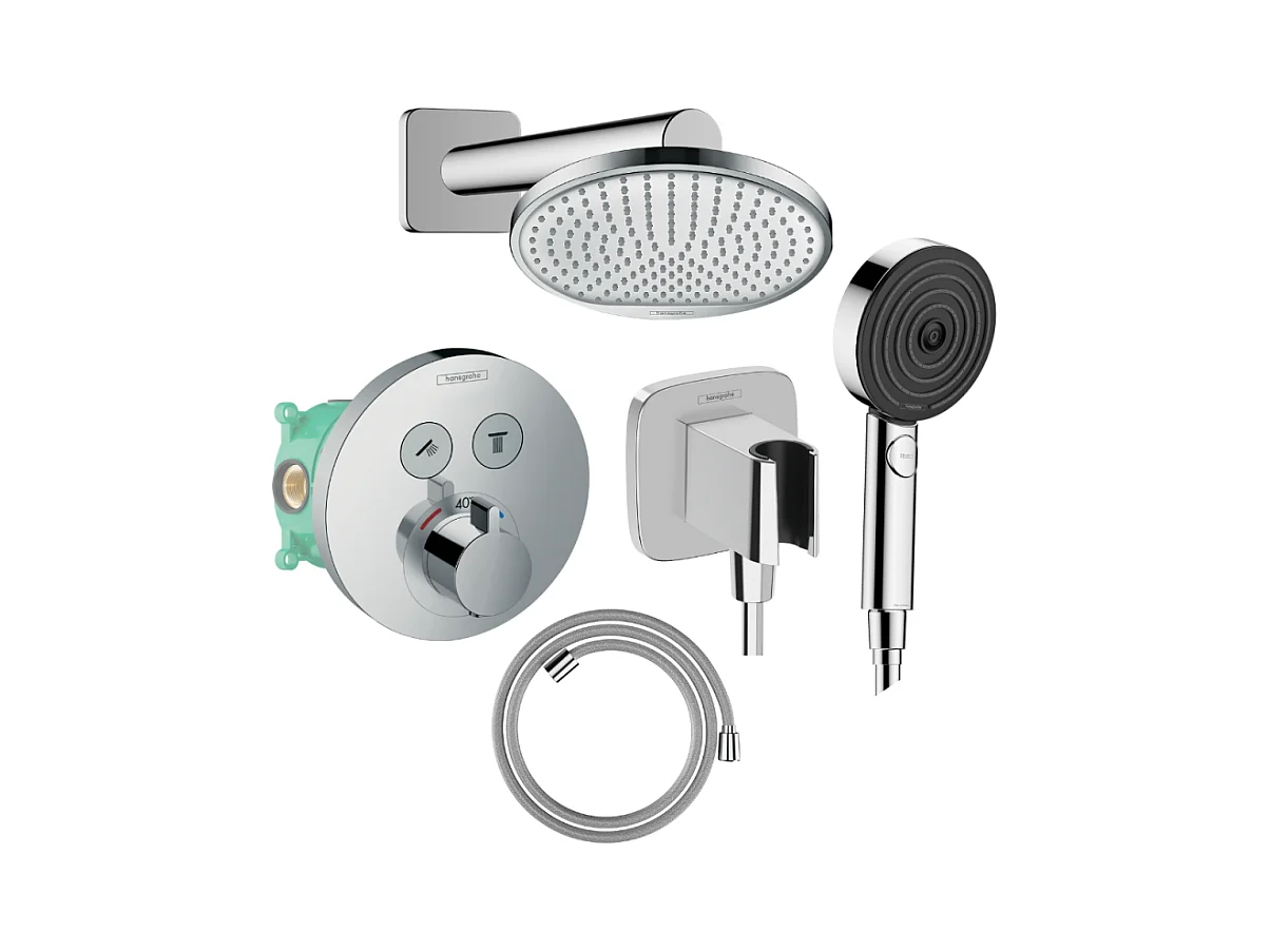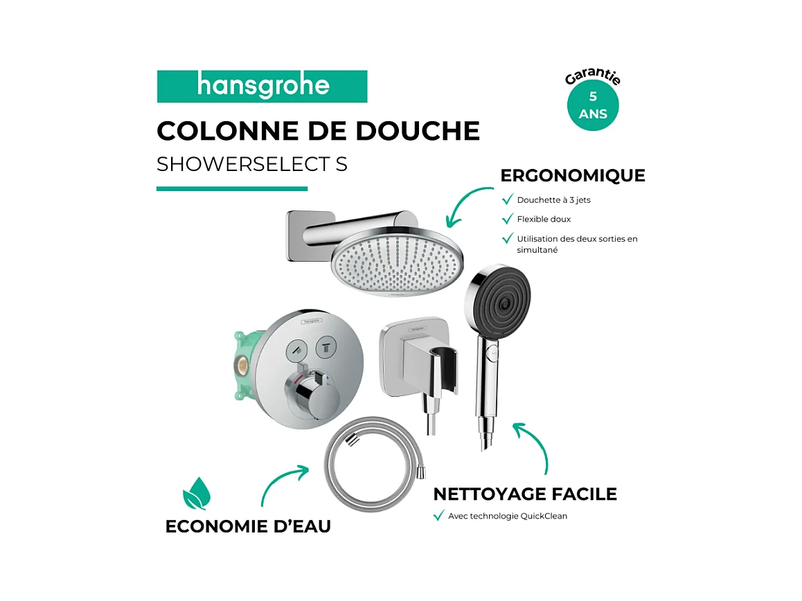 Colonne de douche encastrée thermostatique HANSGROHE ShowerSelect S Douche Crometta S Flexible Designflex Douchette Pulsify chromé