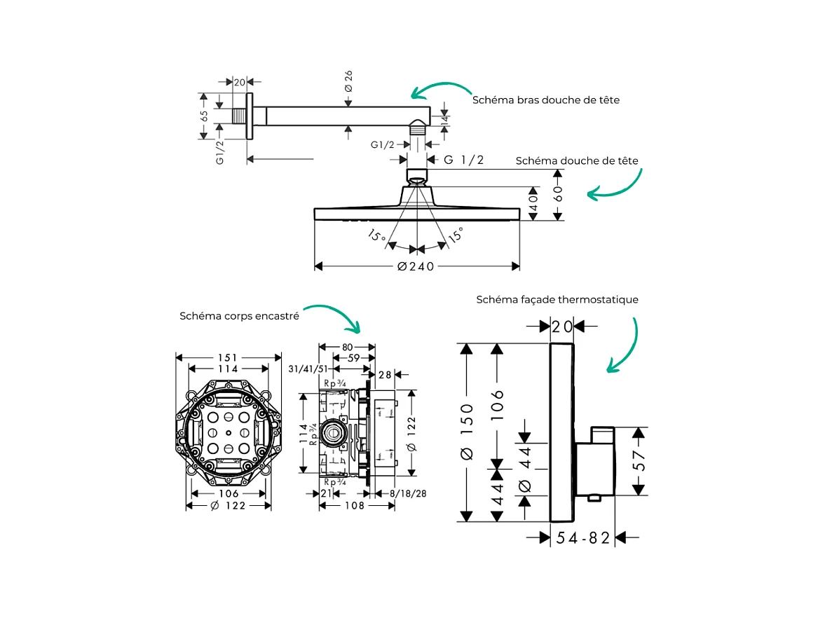Colonne de douche encastrée thermostatique HANSGROHE ShowerSelect S Douche Vernis S Flexible Isiflex Douchette Vernis Blend noir