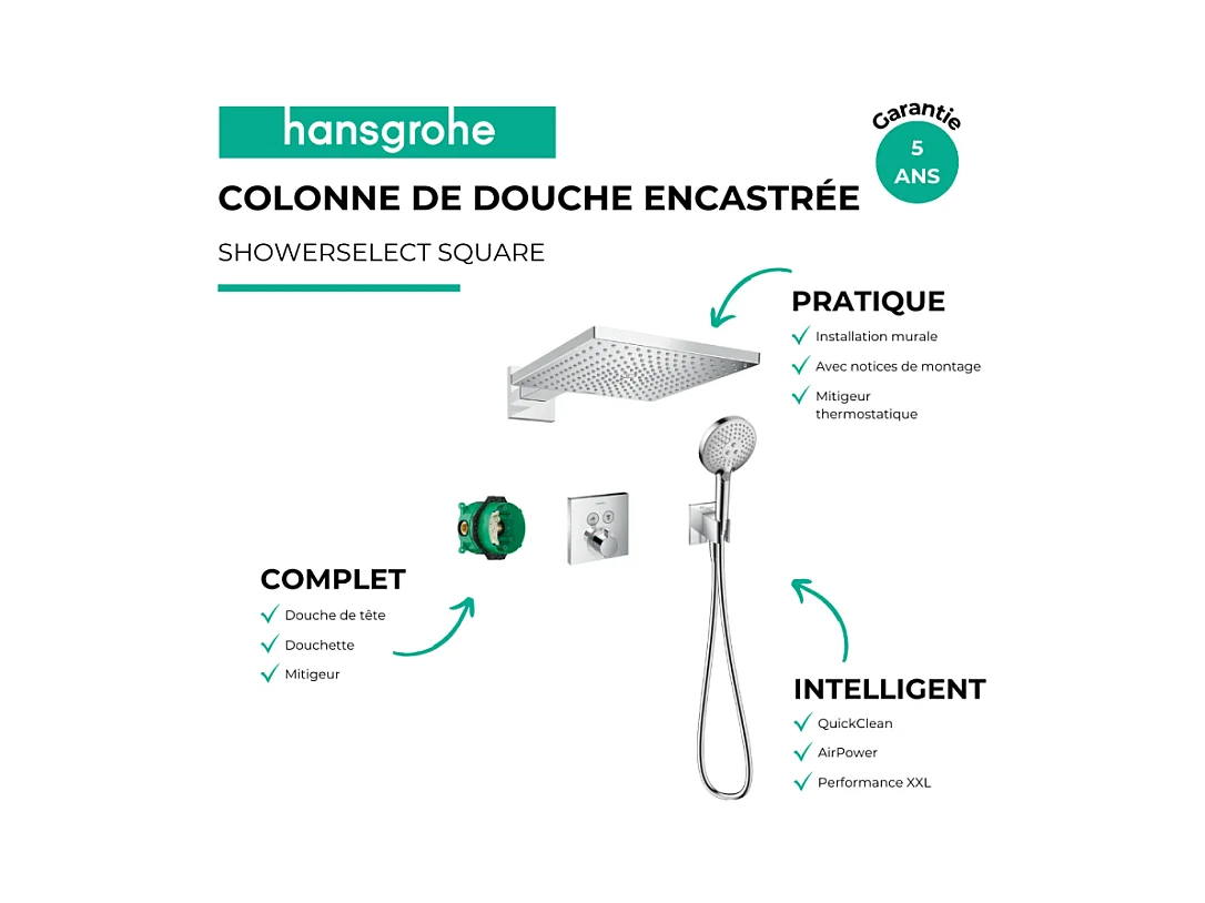 Colonne de douche encastrée thermostatique HANSGROHE ShowerSelect Square chromé