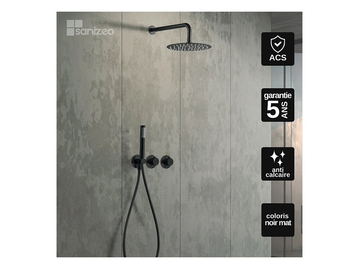 Colonne de Douche Encastrée avec Mitigeur Thermostatique noir mat anti-calcaire - Design Moderne - ASSEN IMEX