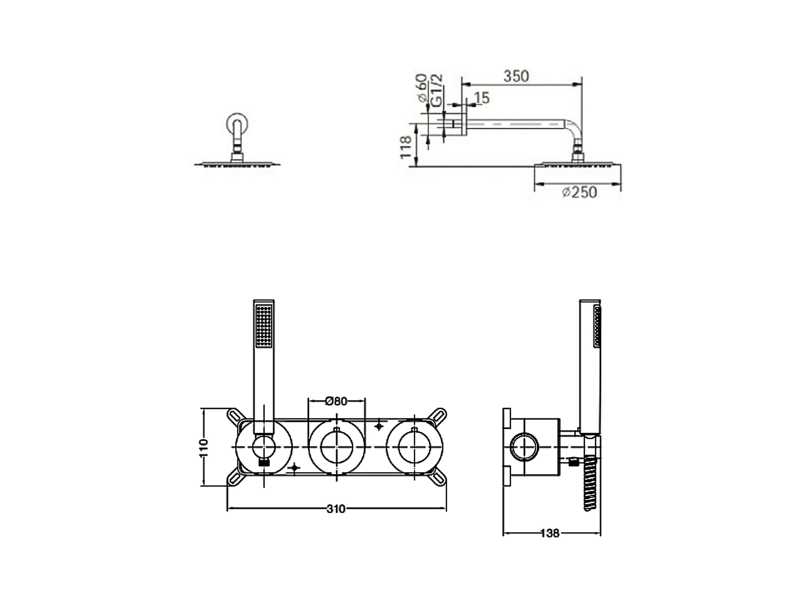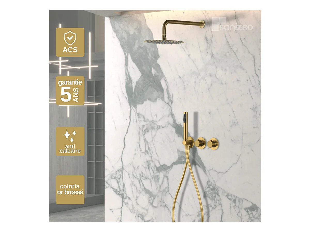 Colonne de Douche Encastrée avec Mitigeur Thermostatique or brossé anti-calcaire - Design Moderne - ASSEN IMEX