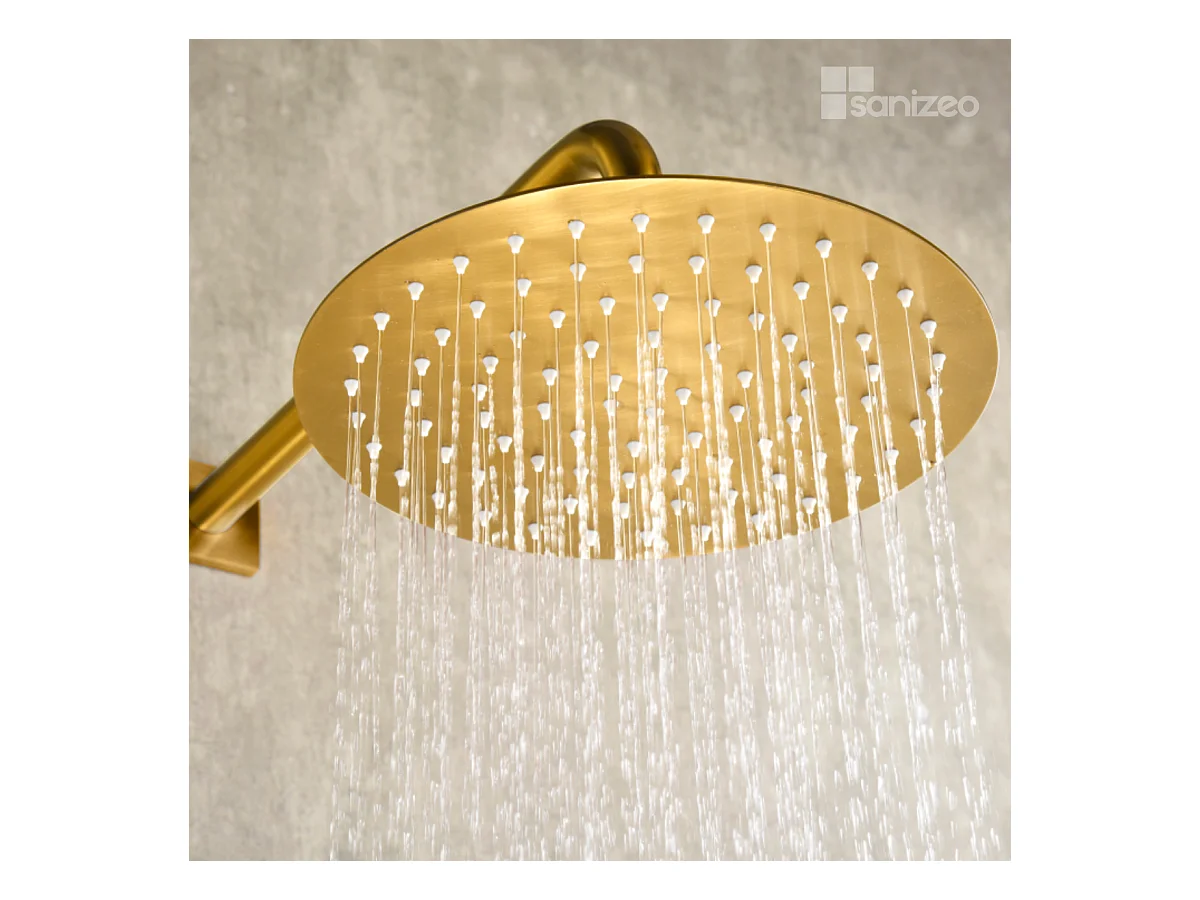 Colonne de Douche Encastrée avec Mitigeur Thermostatique or brossé anti-calcaire - Design Moderne - TIBET IMEX